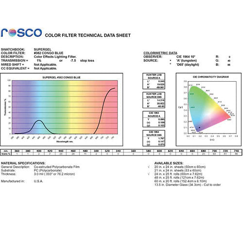 Rosco #382 Cinelux Lighting Filter, Congo Blue (24" x 25' Roll)