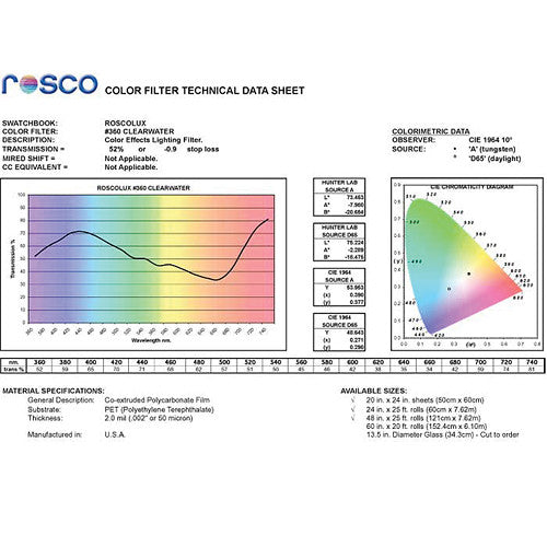 - Rosco Roscolux #360 Filter - Clearwater - 24"x25' Roll
