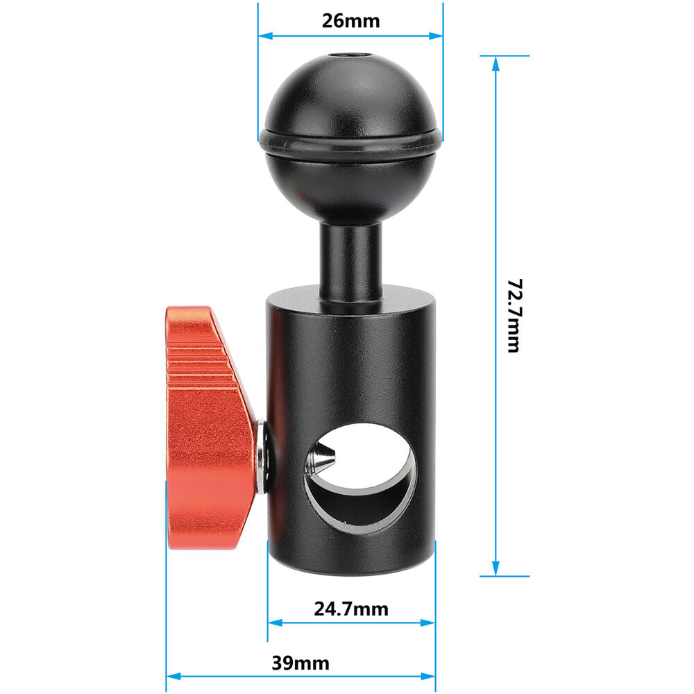 This 5/8" Light Stand Adapter with Ball Head from CAMVATE has a 5/8" baby receiver with a 1" ball head. The 5/8" receiver mounts on a light stand or pole with a baby pin, and it can be fastened by its red locking knob. This piece is constructed from aluminum and supports additional accessories.