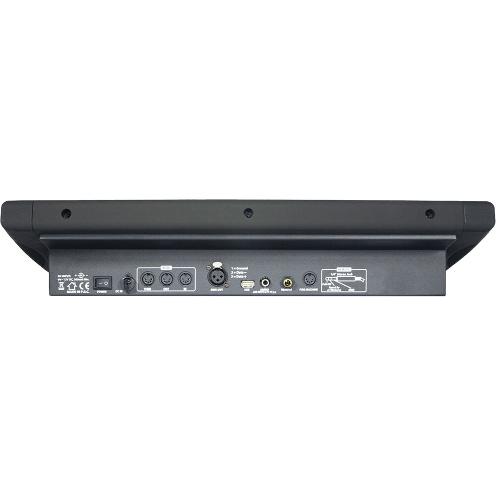 Connectors | DMX Output: 3-Pin XLR (Female) MIDI In: 5-Pin DIN Out: 5-Pin DIN Through: 5-Pin DIN Audio Line Input: 100 mV~1Vpp Remote 1/4" Stereo Jack Fog Machine 5-Pin DIN |