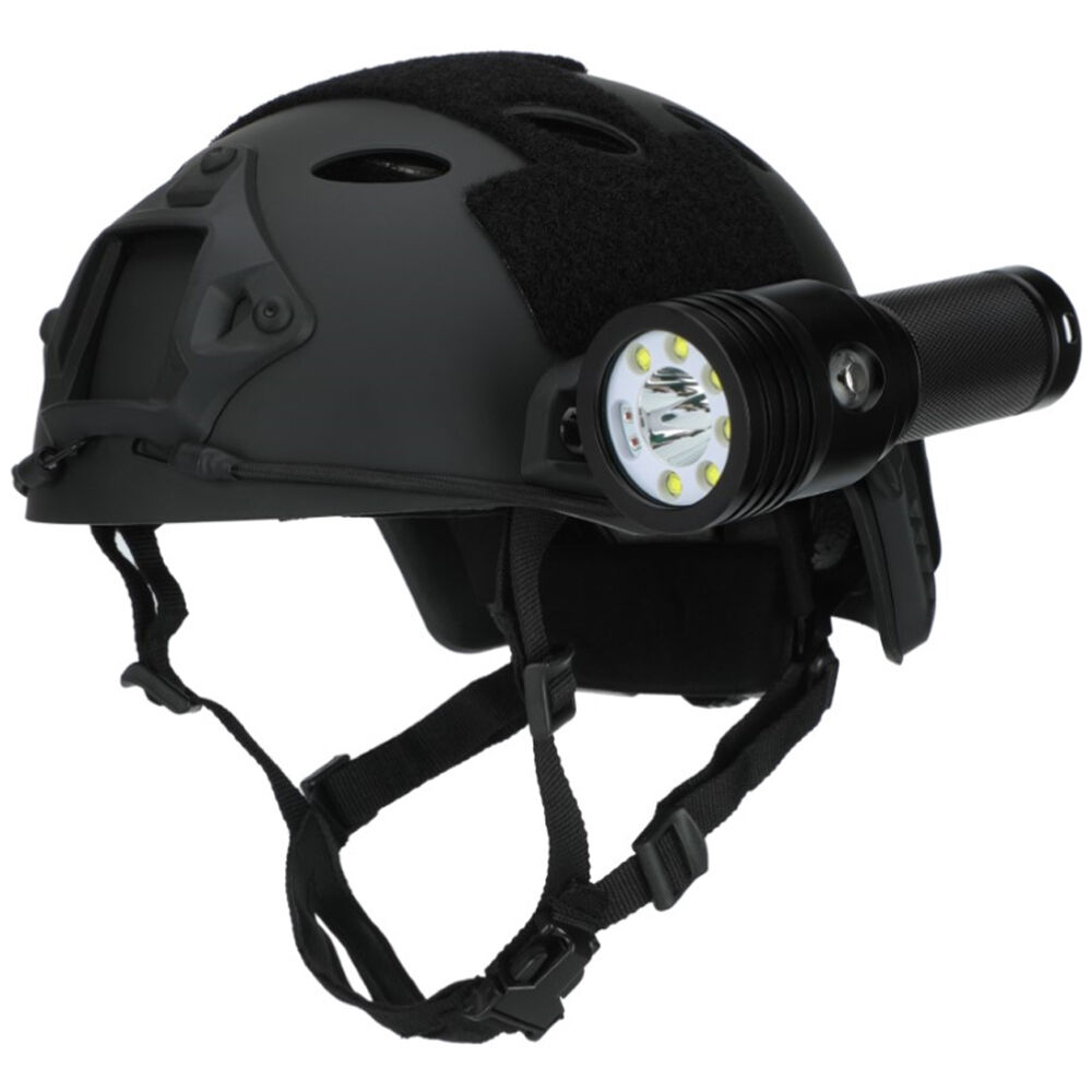 Dive and explore with confidence using the Bigblue Dual-Light Dive Helmet with Adjustable Mounts, an underwater lighting solution suitable for seasoned professionals and beginner explorers. Compatible with two optional, high-performance Bigblue underwater flashlights, the helmet's adjustment mounts and locking mechanisms secure the lights and guarantee reliable performance during dives. The helmet is made from ABS and aluminum materials for a durable construction and comfortable fit.