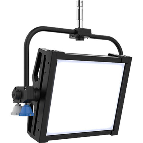 The onAir Panel 1 IP Pole Operation Yoke from CHAUVET PROFESSIONAL allows panning and tilting adjustment of lights hung overhead on a grid or pipe. The optional pole engages with cups on the yoke. The blue cup adjusts panning and the white cup adjusts the tilting.
