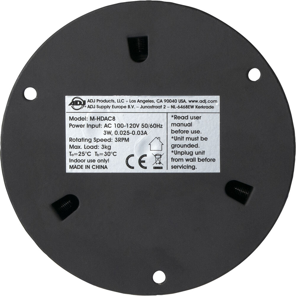Rotate your mirror ball with the Eliminator Lighting MBMHD8, a heavy-duty motor designed to safely support and rotate mirror balls up to 16" in diameter and weighing up to 6.6 lb, with a steady speed of 3 rpm (not adjustable). Easy to operate, this motor is intended for indoor use in permanent installations and nightclubs or in mobile DJ/band applications. The MBMHD8 includes a 13" chain and two O-shaped mounting rings.