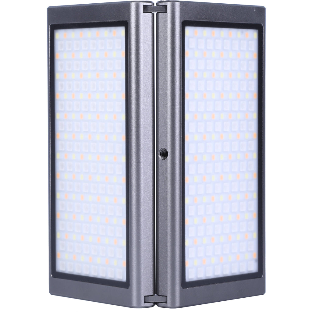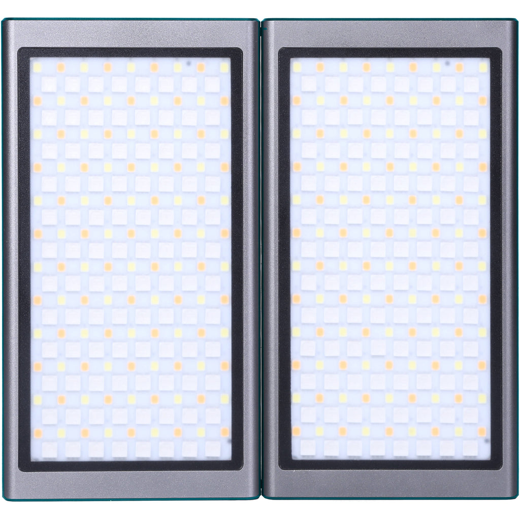 Each panel incorporates a 3800mAh battery and has a USB Type-C port for charging using an included cable. An OLED screen on the rear confirms all the selected settings as well as the remaining battery life. A 1/4"-20 threaded hole on the bottom of the light allows you to attach it directly to your camera, cage, or other support using one of the included mounting accessories. Integrated magnets allow you to hang the light on most ferrous metal surfaces without the need for a stand. A downloadable iOS app provides additional functionality.