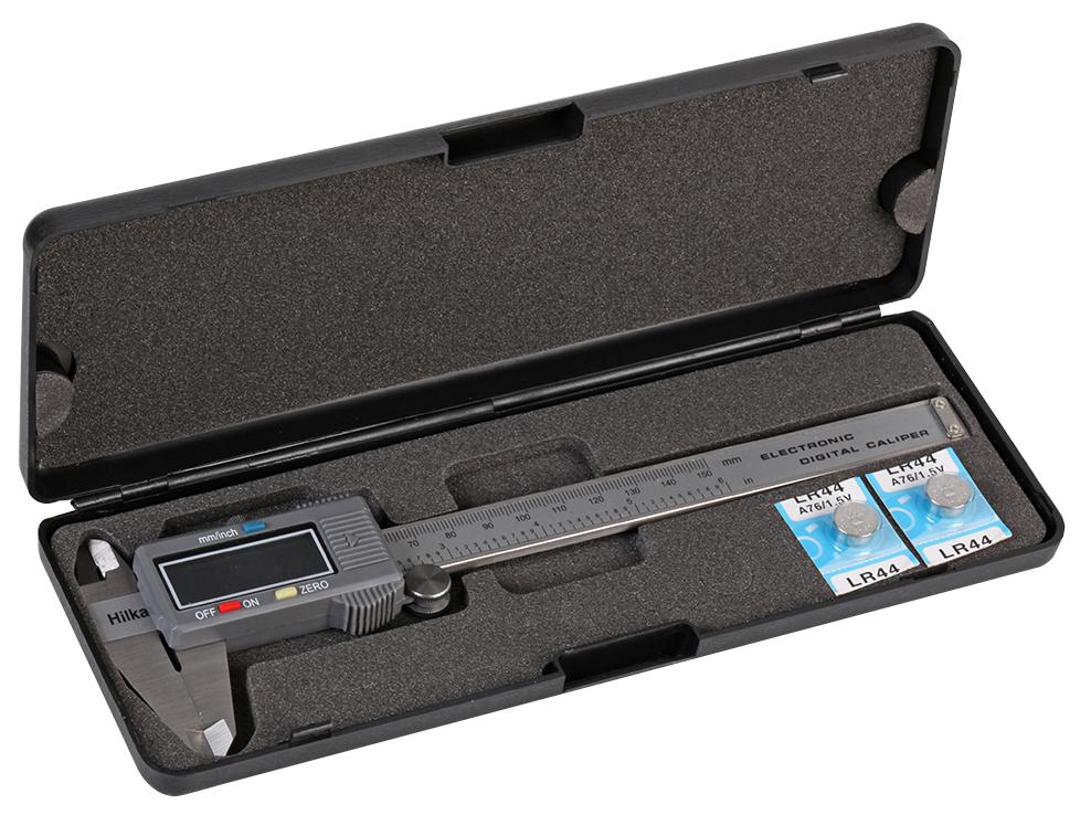Digital calipers with a durable stainless steel construction in plastic case. Zero calibration switch with automatic on/off easy to read LCD screen. Suitable for taking internal, external and depth measurements with maximum measuring range 150mm
