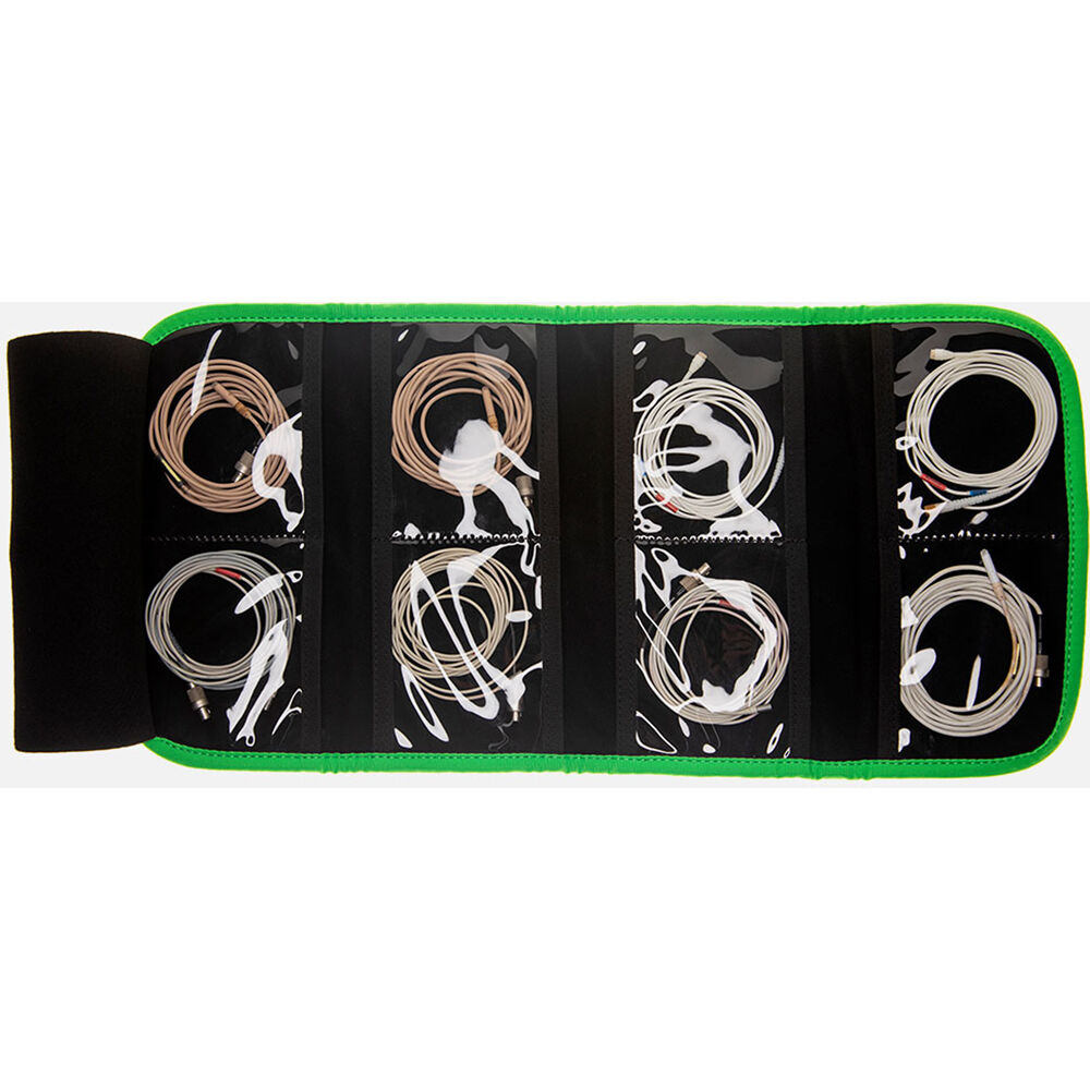 The purple 8NP Bag by Viviana unfolds to reveal eight pouches for lavaliers or other small items you may need during a shoot. Fold up and fasten the hook-and-loop closure to secure the bag.