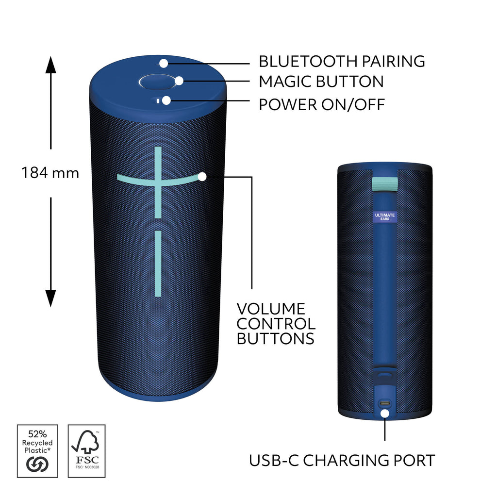 - Ultimate Ears BOOM 4 Wireless Bluetooth Speaker (Blue)
