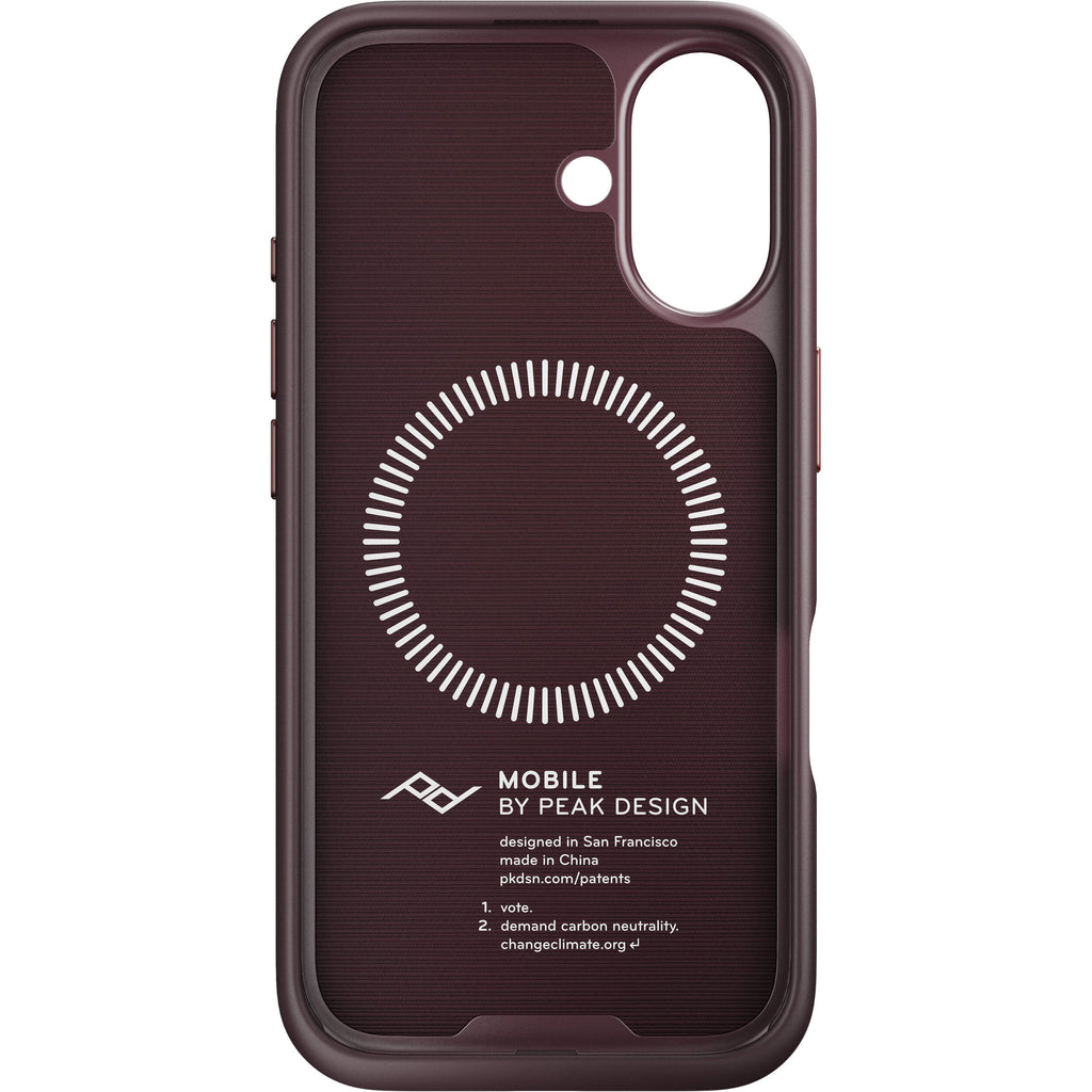 Your phone can become part of the Peak Design Mobile Ecosystem when you slip it into this eclipse-colored Mobile Everyday Fabric Case for iPhone 16 from Peak Design. The ecosystem is based on the SlimLink connector, which is a magnetic/mechanical lock made from a high-strength ceramic locking ring and high-temp neodymium magnets. The result is a fast and strong hold to a wide variety of SlimLink accessories, such as mounts, chargers, wallets, and more. The 0.1" slim profile case is wrapped in Versa Shell fabric, which is a 100% recycled Bluesign-approved nylon canvas.
