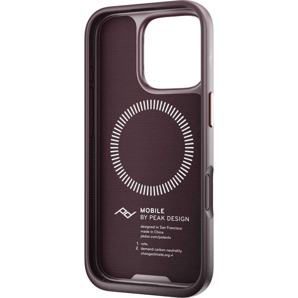 Your phone can become part of the Peak Design Mobile Ecosystem when you slip it into this eclipse-colored Mobile Everyday Fabric Case for iPhone 16 Pro from Peak Design. The ecosystem is based on the SlimLink connector, which is a magnetic/mechanical lock made from a high-strength ceramic locking ring and high-temp neodymium magnets. The result is a fast and strong hold to a wide variety of SlimLink accessories, such as mounts, chargers, wallets, and more. The 0.1" slim profile case is wrapped in Versal Shell fabric, which is a 100% recycled Bluesign-approved nylon canvas.