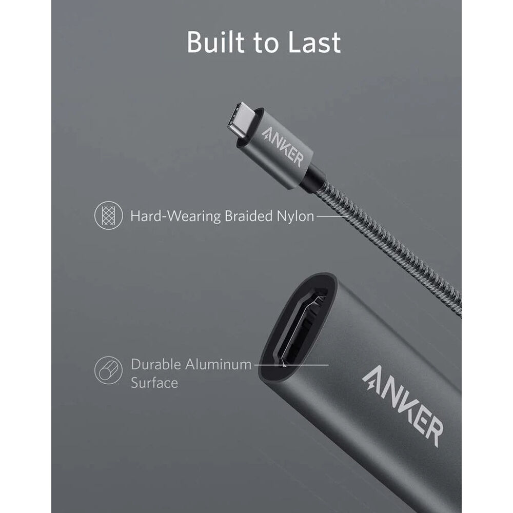 Connect your compatible USB-C devices to an HDMI monitor, projector, or display using the 310 USB-C to HDMI Adapter from Anker, which features one male USB-C interface and one female HDMI interface. The USB-C interface connects to your compatible host device, while the HDMI interface plugs into a male HDMI cable, which connects to your HDMI-compatible device.
