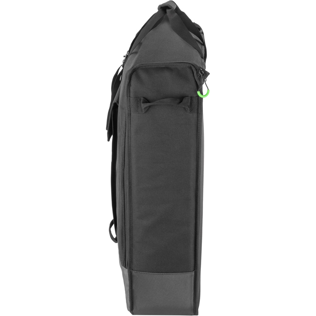 The case is padded and weather resistant all around, and textured and waterproof on the bottom. It's dual-zippered, and one side opens fully like an envelope flap to allow you to gently and safely insert your display. Other than LCDs, the case can be used to transport lighting fixtures and other gear of similar form and weight. There's also a large exterior pocket for accessories and a clear display window for an ID or business card.