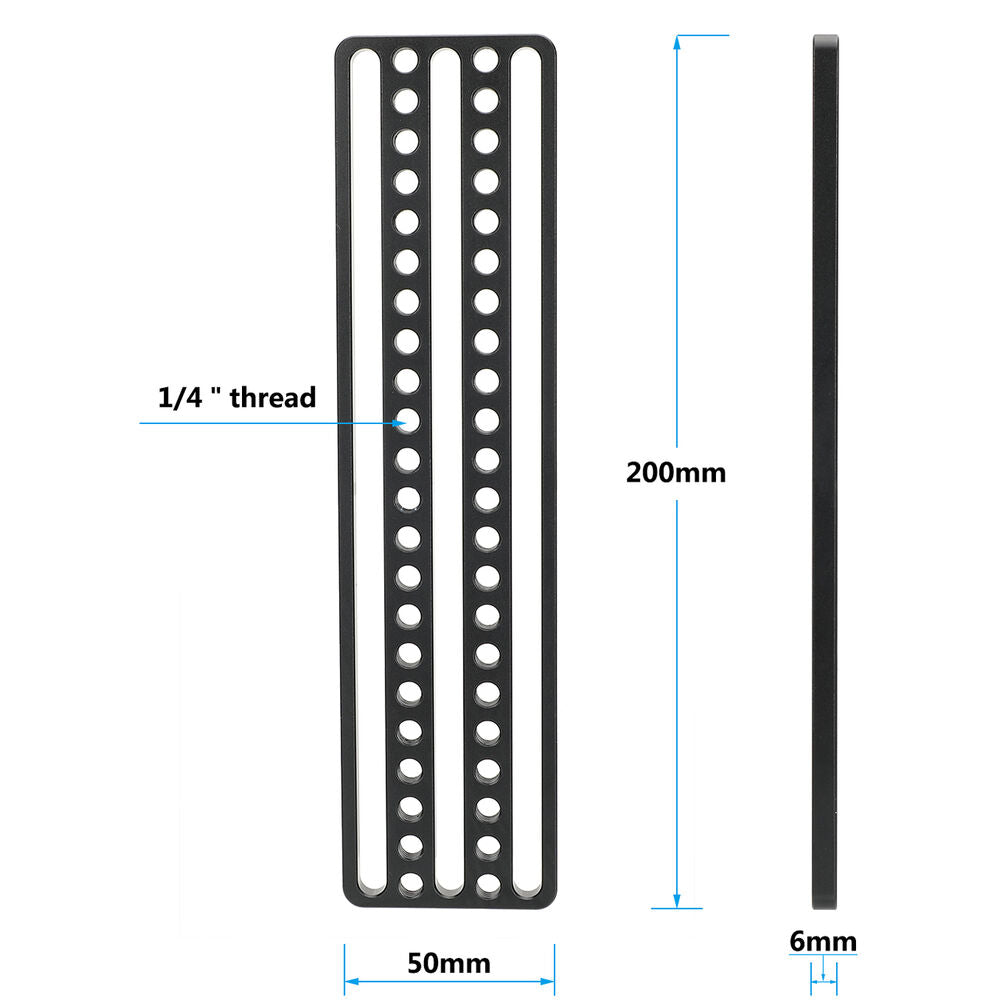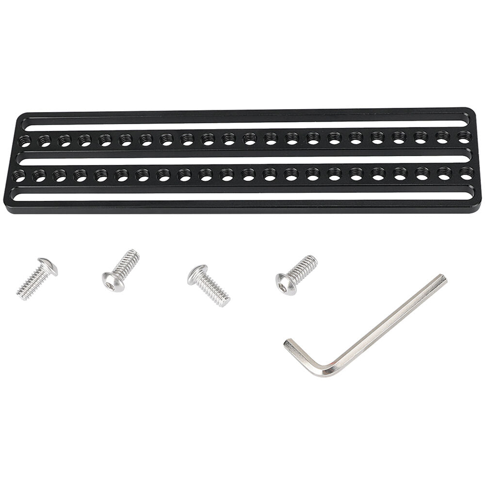 Incorporate this 7.9" Lightweight Extended Cheese Plate from CAMVATE into your rig's configuration to add length and mounting points for accessories. The plate features three 1/4"-20 mounting groves and multiple 1/4"-20 threads for securing camera plates or articulating arms. Its overall aluminum alloy construction ensures the plate remains lightweight and durable.