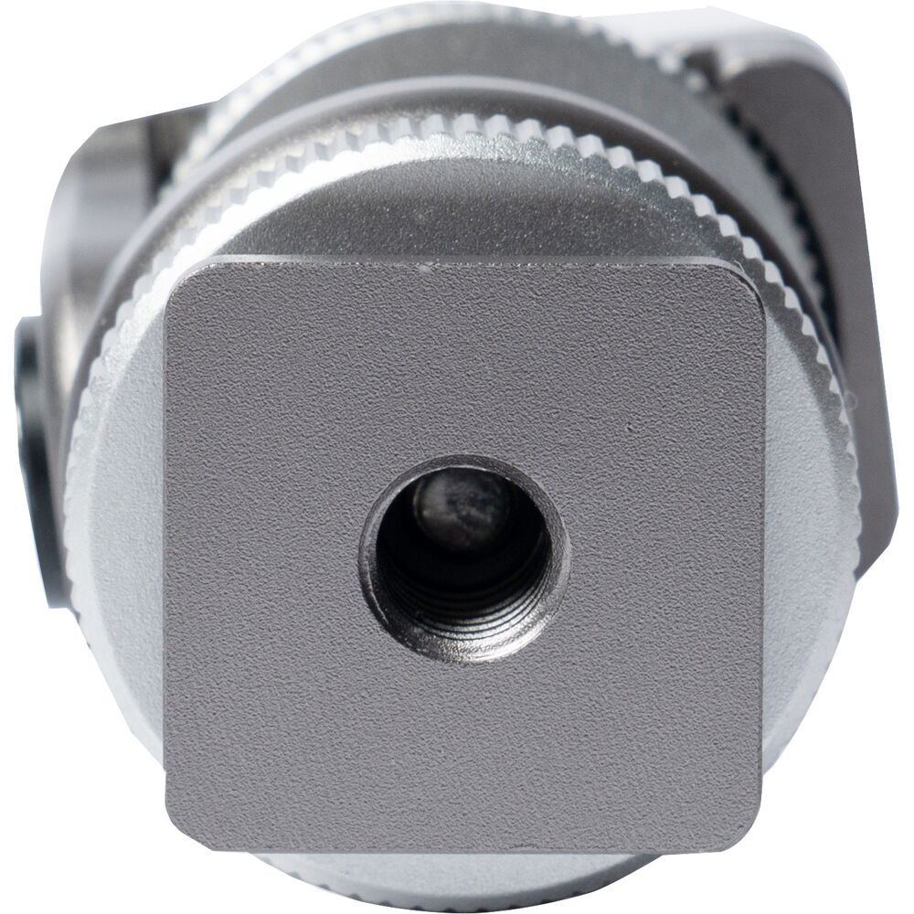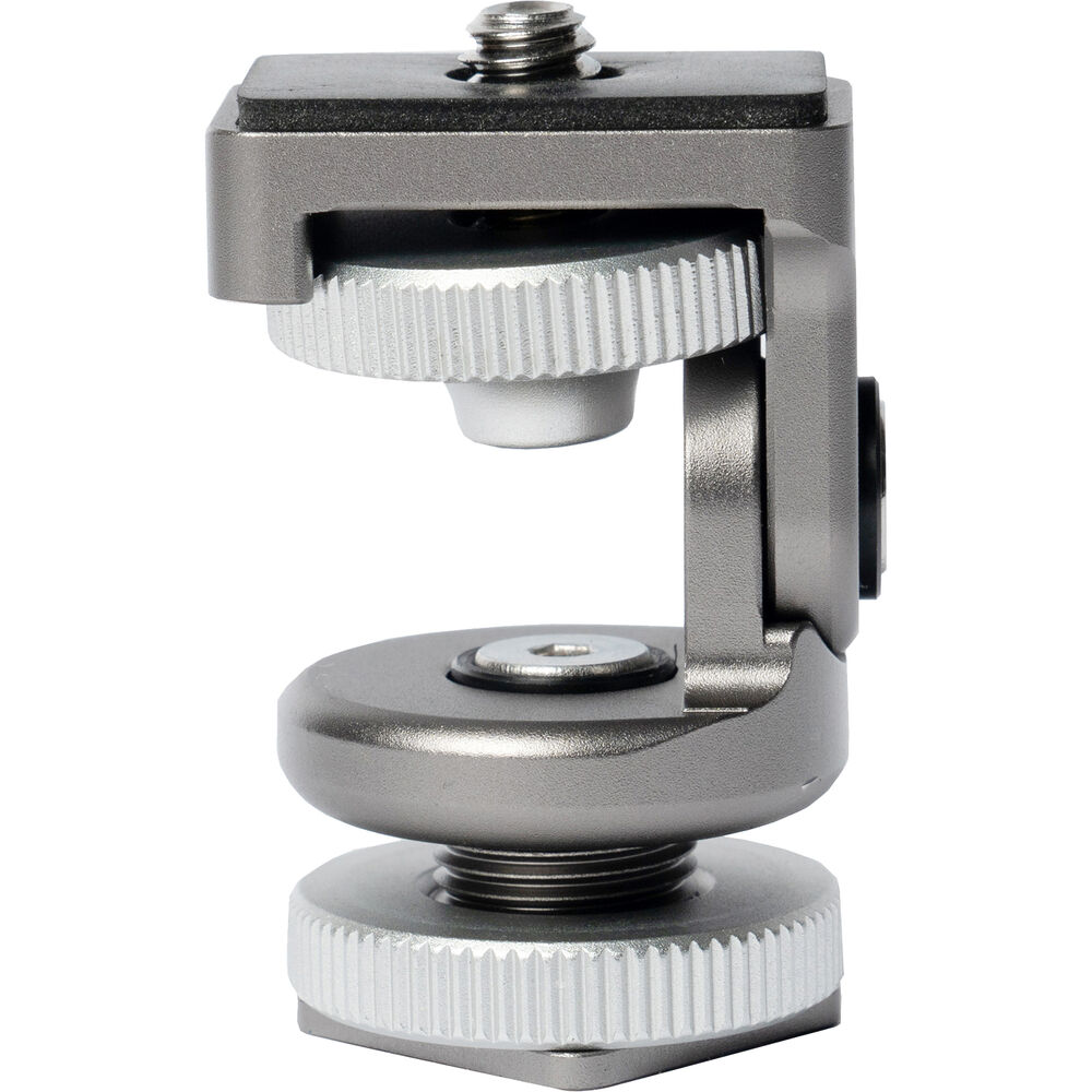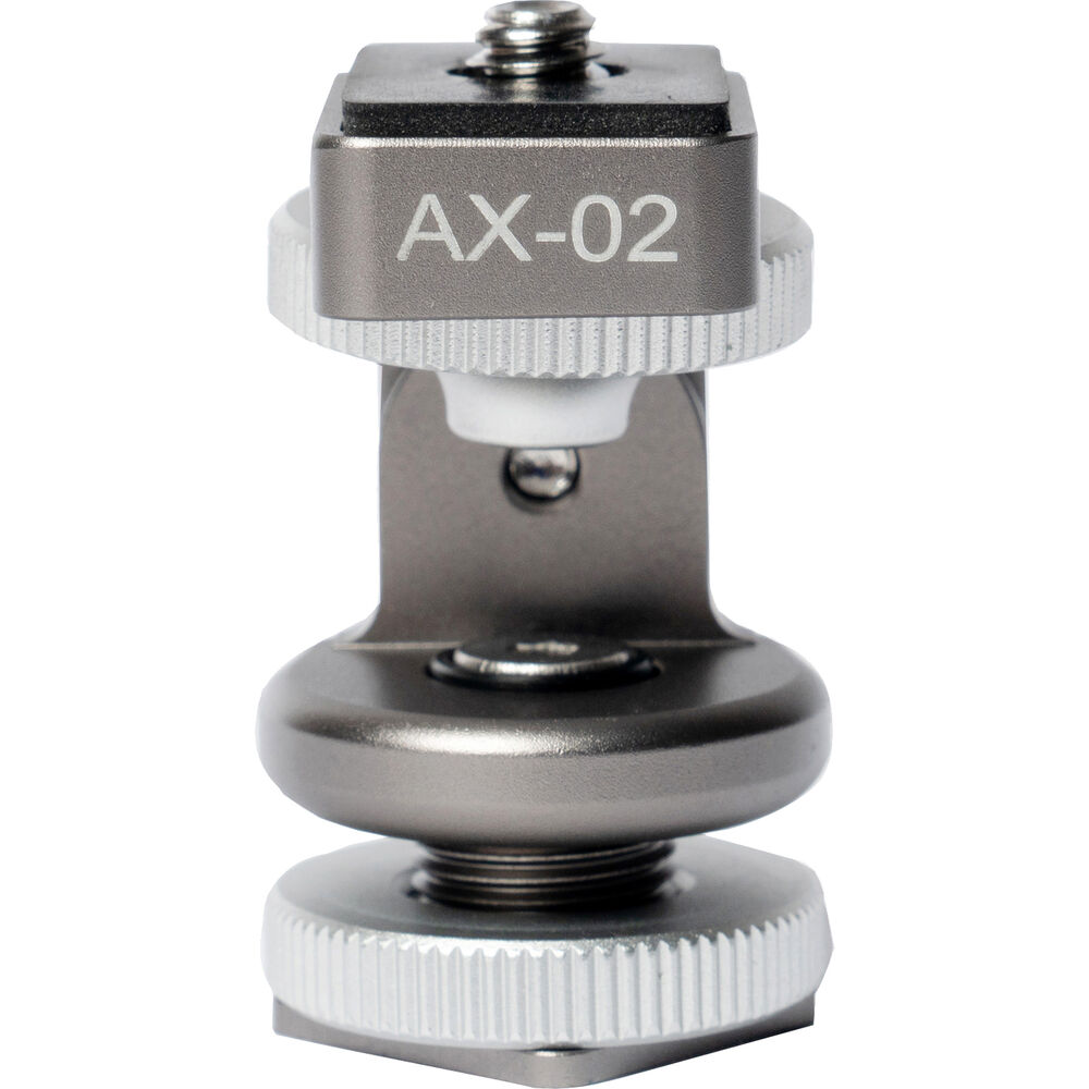 The Explorer AX-02 Aura Explorer Mini Tilt Head is a shoe mount unit designed to be used with hot or cold shoes allowing accessories such as LED light panels, microphones, and more to be mounted on a camera, video setup, quick release plate, or small tabletop tripod. The head has a maximum load capacity of 4.4 lb and includes a 1/4'-20 bottom thread in addition to the shoe mount. The AX-02 allows the mounted accessory to tilt up and down with friction adjustments made with the included Allen key. The Explorer Mini Tilt Head is very lightweight at only 1.3 oz and features aluminum alloy construction with an anodized finish for durability.