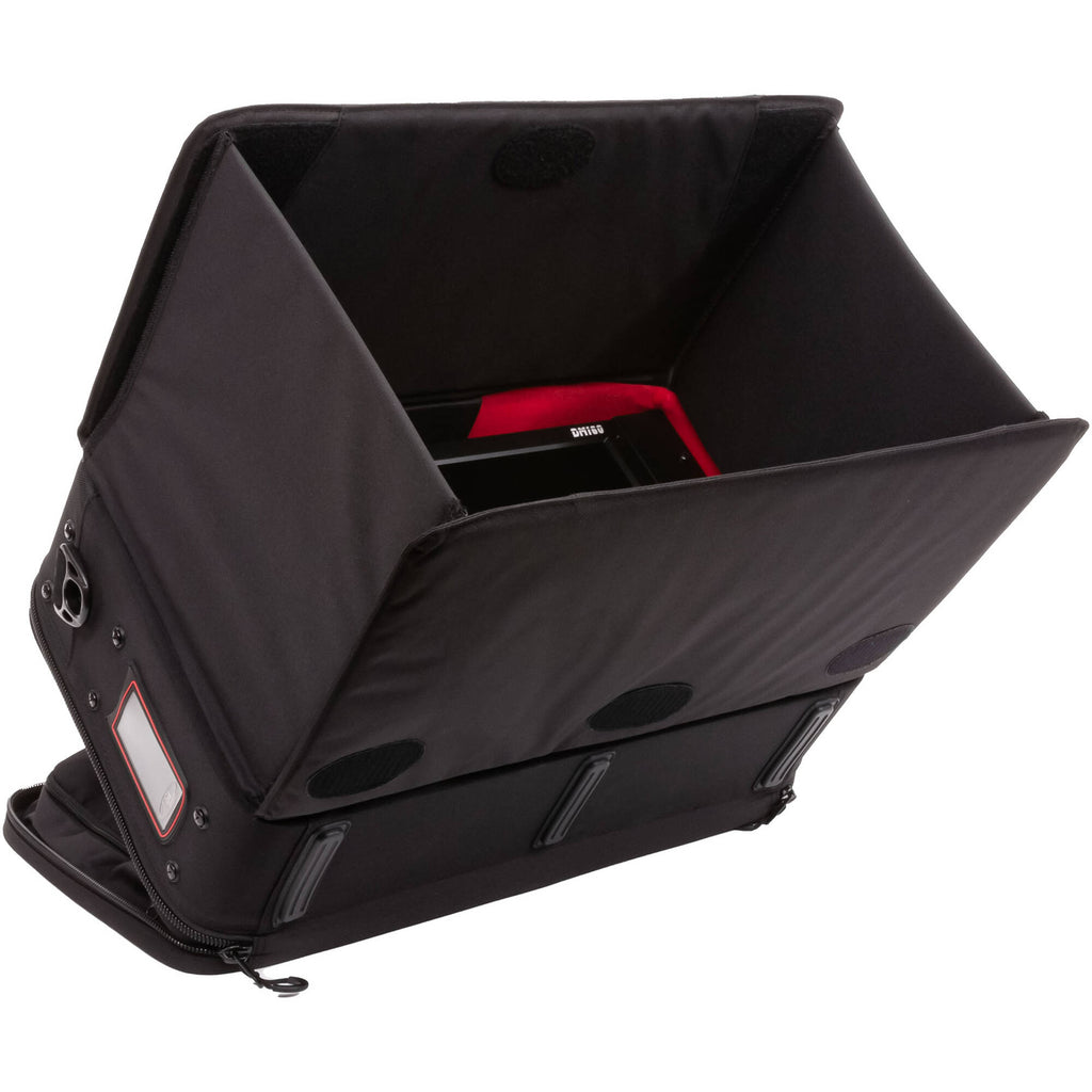 The 6RU Carrying Case with Integrated Hood from FSI protects your monitor on location or while traveling. Made from durable Cordura and ballistic nylon, it features integrated 6RU rack rails that provide near universal support for 6RU and smaller rack-mountable flat panel monitors. The foam-padded interior is supported by a honeycomb frame and the case incorporates a zippered back for ventilation, a four-sided hood, and an adjustable back leg that tilts to optimize your viewing angle. Features include a top handle, a detachable shoulder strap, and two interior pockets. A back rain cape and a C-stand adapter are available separately.