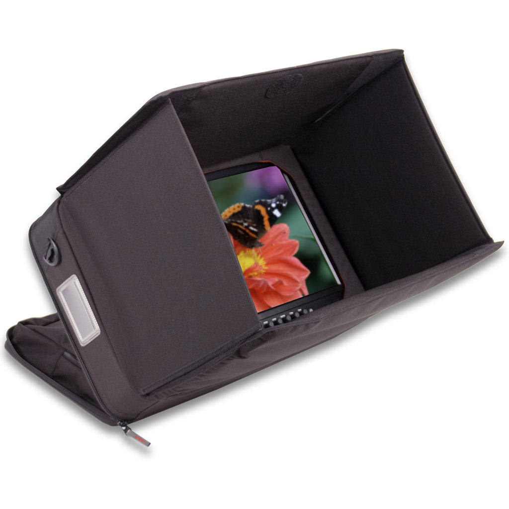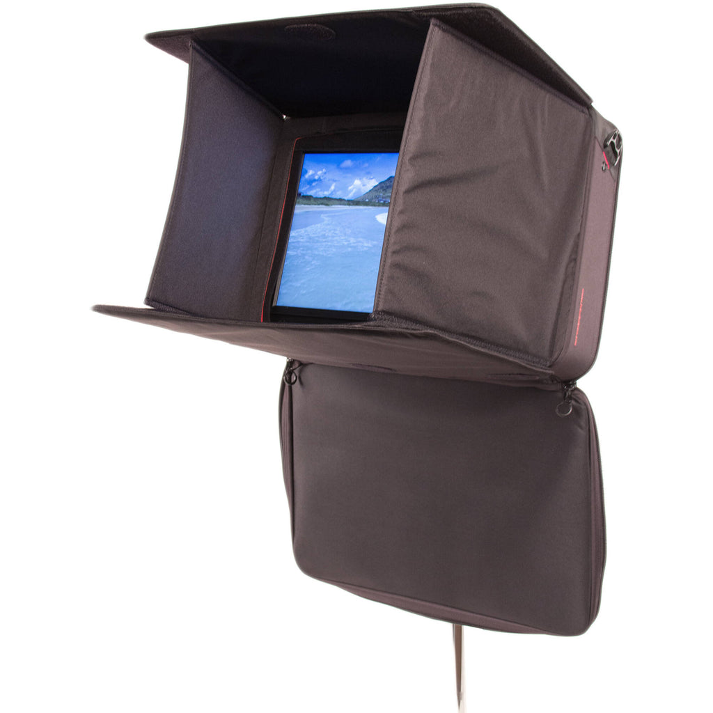 An integrated, four-sided hood provides ample shade for viewing in brightly lit conditions, and a foam-padded interior and single-piece, high-impact plastic honeycomb frame keeps the monitor protected from damage during transport. The unique AccuSlide system holds the monitor securely in place without causing any obstruction to the inputs or power connectors. The case has two interior pockets for storing cables and other accessories, as well as a detachable shoulder strap for easy transport.