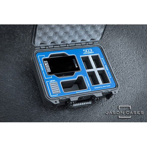 The travel-size Pelican Case for SmallHD 503 UltraBright Monitor features a custom foam designed by Jason Cases. It holds the 503 UltraBright monitor, four batteries, six memory cards, and other small accessories in dedicated slots, allowing you to keep all key accessories in one place.