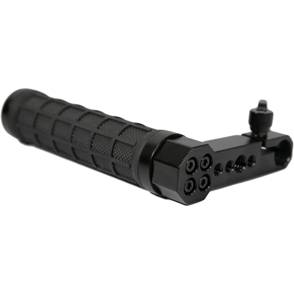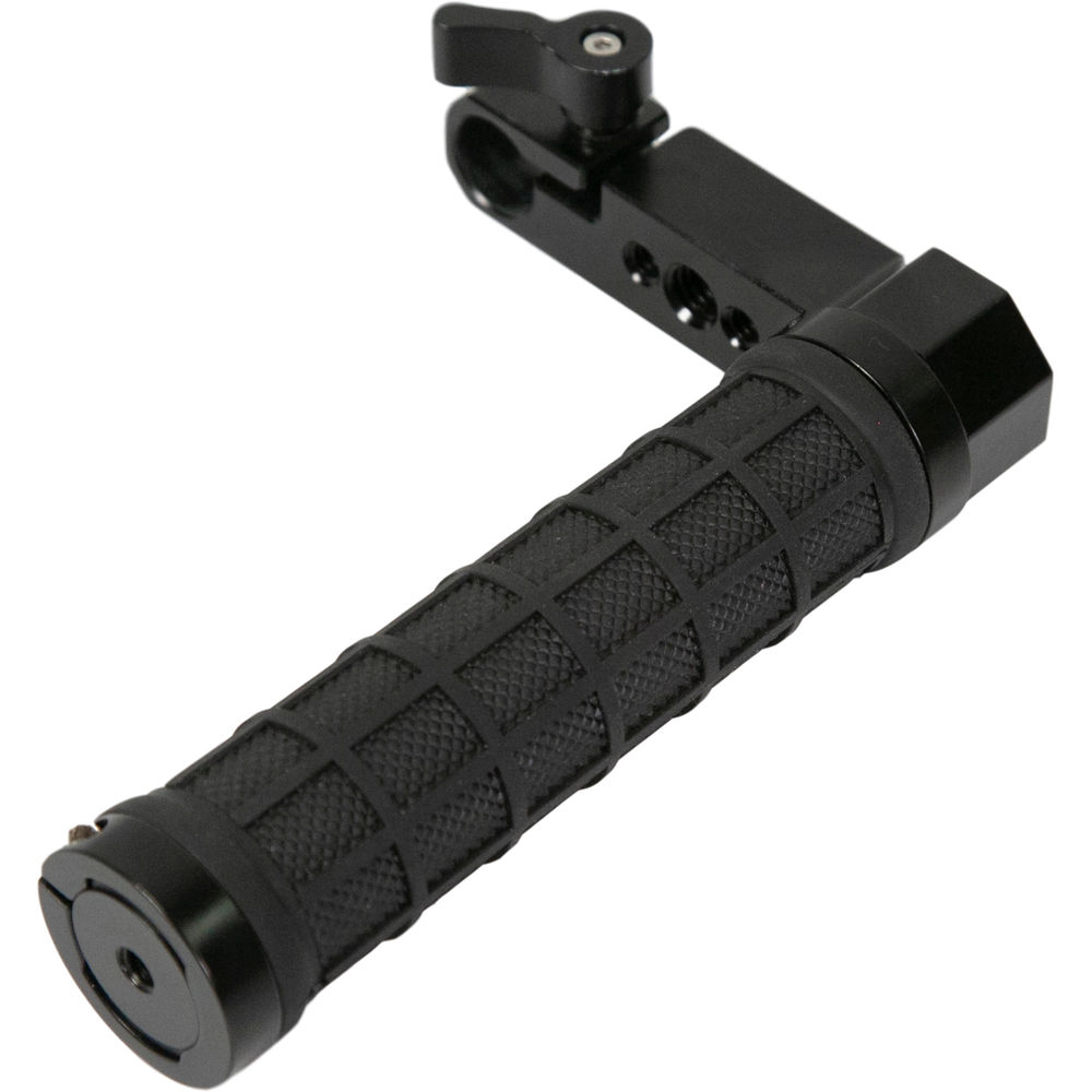 The Hand Grip from TRIGYN is designed to add support and comfort to maneuvering TRIGYN's gear director kit dual cage. The hand grip has KIPP lever-style spring-loaded screws that allow screw relocation and toolless adjustments. There are 1/4"-20 and 3/8"-16 mounting points for accessories and a 15mm rod base for universal application.