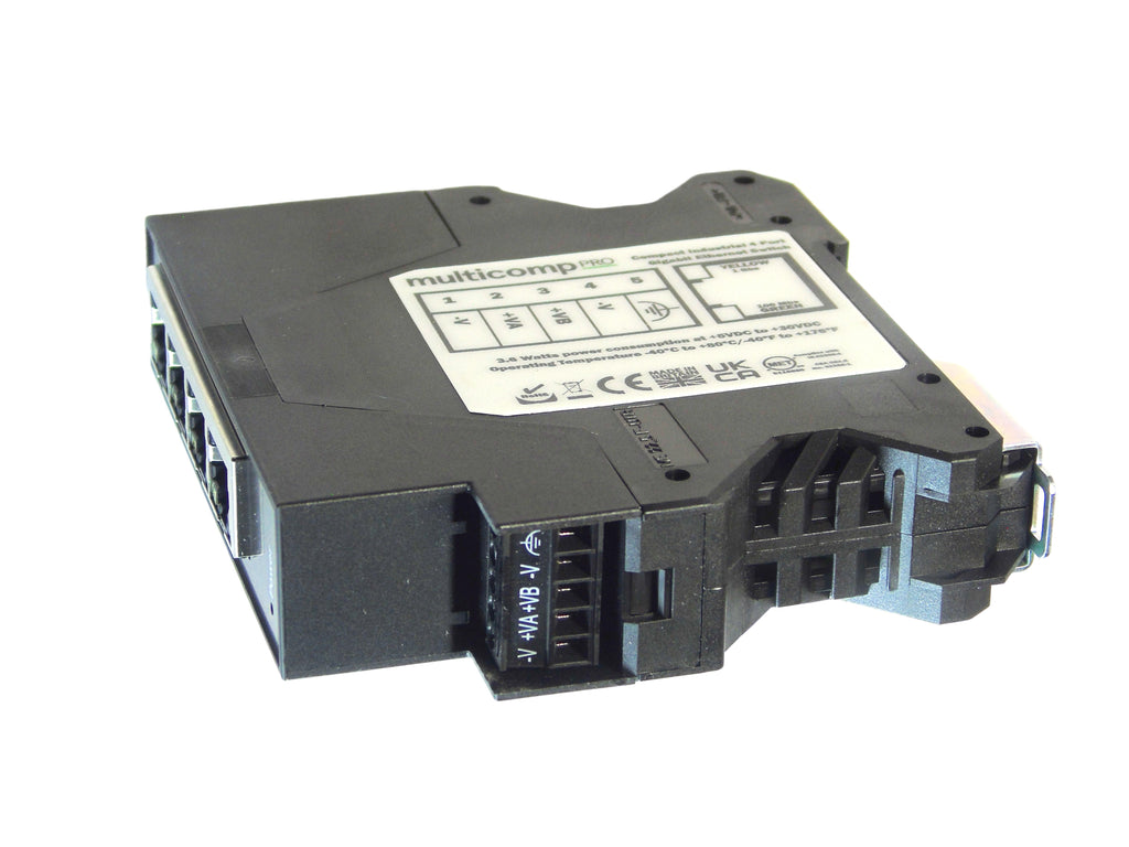 MP-514 4 port industrial Ethernet switch comes with a wide voltage input range of +5V to +30V DC, which can be powered by a variety of sources. It automatically detects data transmission speeds of 10, 100 or 1000 Mbps with efficient bulk data transfer and system performance. Its wide operating range of -40°C to +80°C enables it to work in extreme industrial conditions. All ethernet ports are auto MDI/MDIX supporting straight-through or crossover ethernet cables. Its redundant dual power inputs reduce the risk of power outage. The product also packs a jumbo frame support of up to 9K frames, with auto power consumption optimization based on the status of the link device. With its non-conducting polyamide case and easy DIN installation, this product is an essential tool for your ethernet needs.
