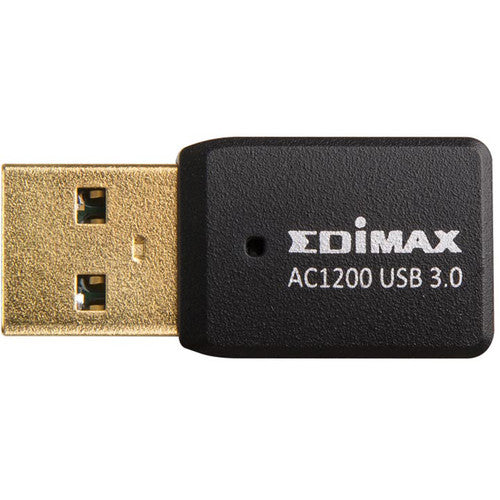 Connect your laptop or other USB equipped computer to a Wi-Fi network with the AC1200 Dual-Band MU-MIMO USB 3.0 Adapter from Edimax . This tiny, discrete USB Wi-Fi adapter features a USB 3.0 connector and supports the 802.11ac Wi-Fi network standard while operating on both 2.4 GHz and 5 GHz frequencies. Once configured, users can take advantage of wireless data transfer rates of up to 1200 Mb/s along with support for both MU-MIMO and beamforming technologies to ensure you receive a strong, reliable Wi-Fi connection.
