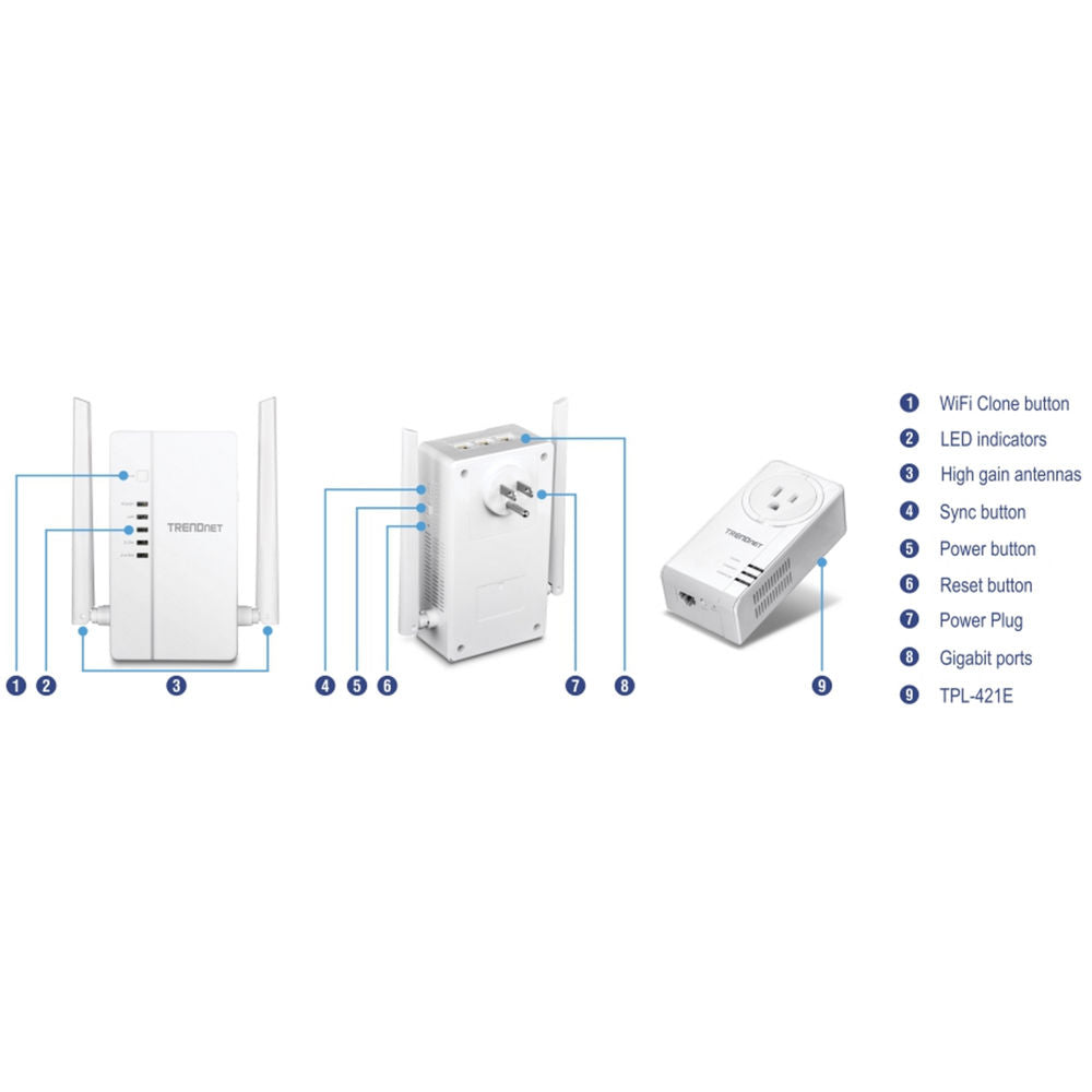 TRENDnet TPL-430APK Wi-Fi Everywhere Powerline 1200 AV2 Wireless Kit