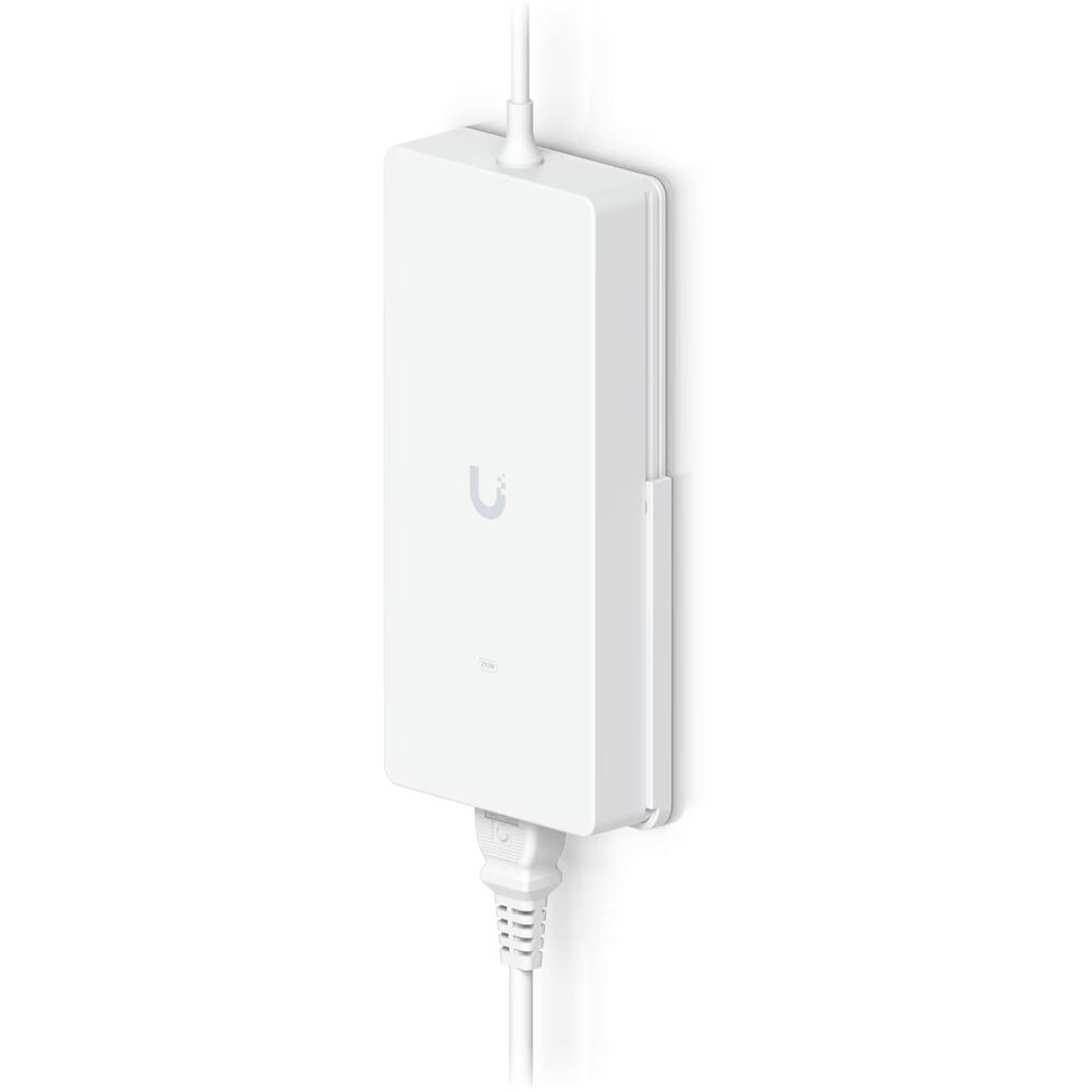 This 210W AC Power Adapter is designed to work with select Ubiquiti PoE compatible switches. It supports 210W at 54V DC and is wall mountable with the included kit.