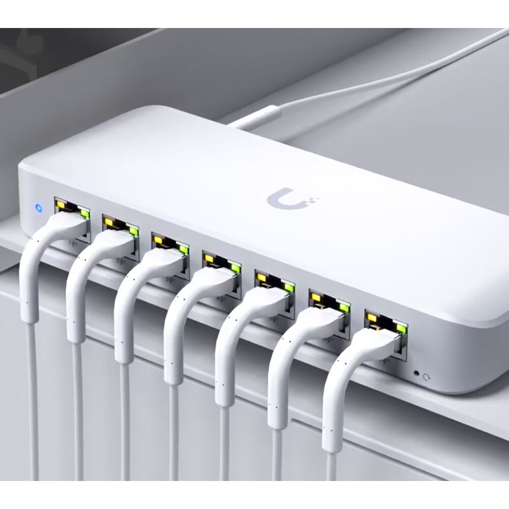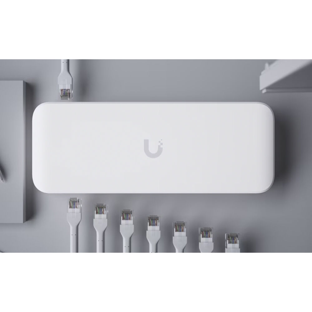 Designed for high versatility, the compact Ubiquiti Switch Ultra discreetly mounts onto a desktop or wall to operate powered devices such as IP cameras, VoIP phones, and access points. Seven of its Gigabit Ethernet ports support up to 30W PoE+ output with a total budget that is determined by the power input. For instance, connecting the PoE++ input to a compatible source provides up to 42W while using a separately purchased 210W AC adapter increases the budget to 202W.