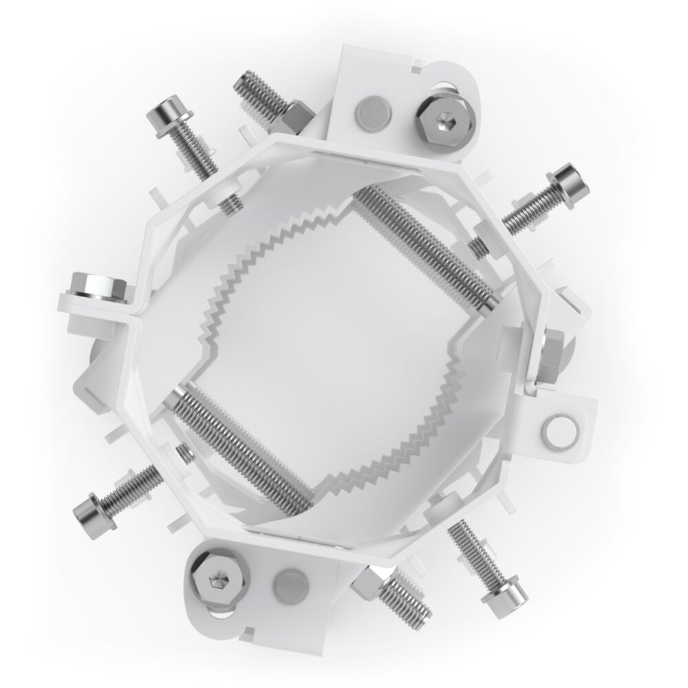 Mount up to four Ubiquiti Wave AP Micro devices for 360° broadcasting with the Wave AP Micro Mount. Made from powder-coated stainless steel, this corrosion-resistant mount may be attached to poles with a diameter of 1 to 3".