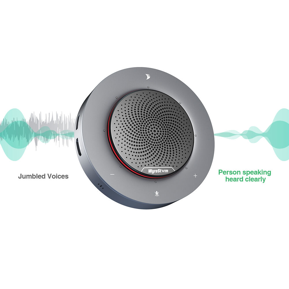 - 360° omnidirectional microphone array with auto level, echo cancellation, and noise reduction