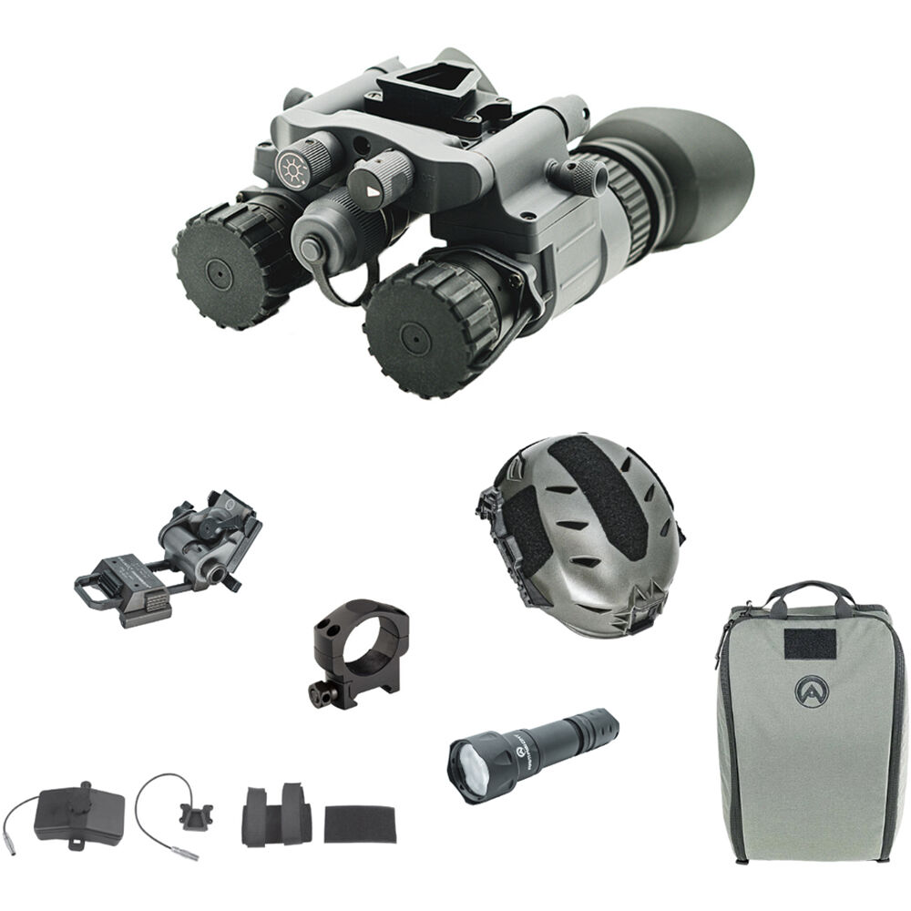 Comprising everything you need to execute night and low-light operations, this Armasight BNVD-51 Ultimate Kit includes FOM 2376 Pinnacle BNVD-51 Night Vision Goggles with a size medium/large EXFIL LTP Helmet, an IR illuminator, a ring mount, a G95 NVG mount, a battery pack, and a kit bag.