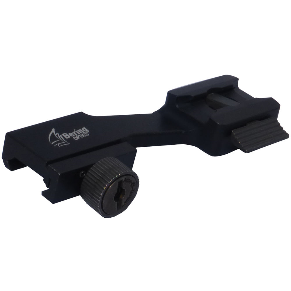 The steel Accu-Torque Weapon Mount from Bering Optics is a lightweight and durable cantilever adapter that attaches your Bering Optics Ocelot Night Vision Monocular or a standard PVS-14 to a Picatinny or a Weaver style rail. It features a wide knurled thumbscrew with Accu-Torque mechanism, which provides a strong and a tight attachment to your rail. To enable you to switch your night vision equipment quickly and easily, it also has a low profile quick release button. This weapon mount is made of steel and weighs 2.5 oz.