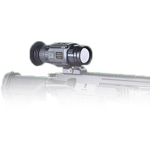Imagery shows on the Hogster R's 1280 x 960 LCOS display. Maximum magnification (optical plus digital) is 8, affording a good look at targets far downrange. The sight has a quick-release mount for Weaver rails and uses two CR123A batteries or a user-supplied external USB Type-C power supply. This weapon sight is shockproof, IP67-rated dust and waterproof, and nitrogen-purged for fog-free performance.
