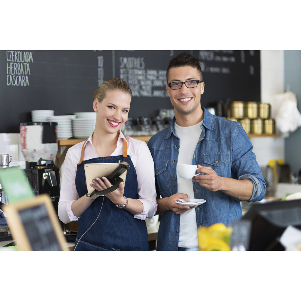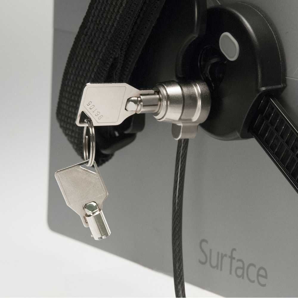 Keep your tablet safe and secure with the Adjustable Security Grip for iPad and Large Tablets from CTA Digital. The tablet holder firmly secures them in place with its simple sliding mechanism and anti-slip rubber inserts. The resizable hand strap on the back can rotate a full 360 degrees so you'll be able to use your tablet in both landscape and portrait modes. With the anti-theft cable lock, you can attach it to a permanent fixture and secure it in place with the included keys. Furthermore, it even supports VESA mounting with the hand strap removed to serve as a display stand.