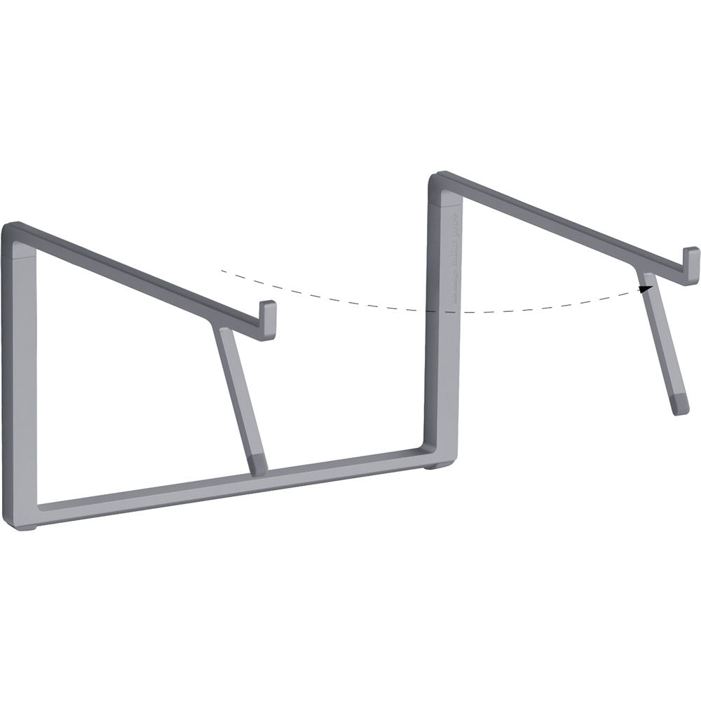 The space gray mBar Pro+ Laptop Stand from Rain Design elevates your notebook 5.5" for a comfortable viewing experience. The mBar Pro+ is compatible with most MacBooks, MacBook Pros, and laptops that have a depth under 10.8". This stand's architecture increases your laptop's airflow with its raised design, making it easier to avoid overheating your device.