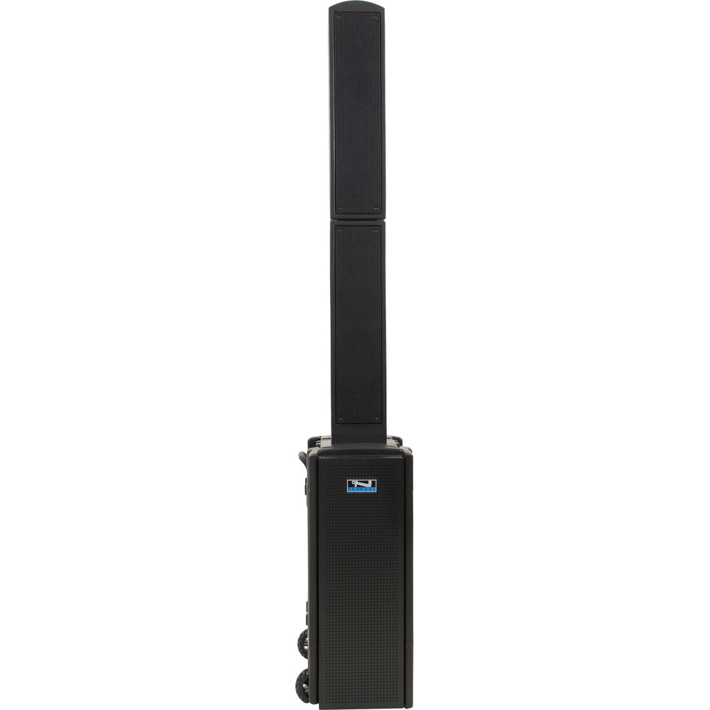 The Anchor Audio BEA2-U4 is a Beacon 2 portable line array tower with Bluetooth and two dual wireless microphone receivers. With 150W of rated output power driving eight 4" neodymium speakers and three 8" woofers and a neodymium compression driver to produce 120 dB SPL, it is designed to deliver versatile and powerful amplification for crowds of up to 2500 people in sports venues, educational facilities, and various indoor and outdoor events.