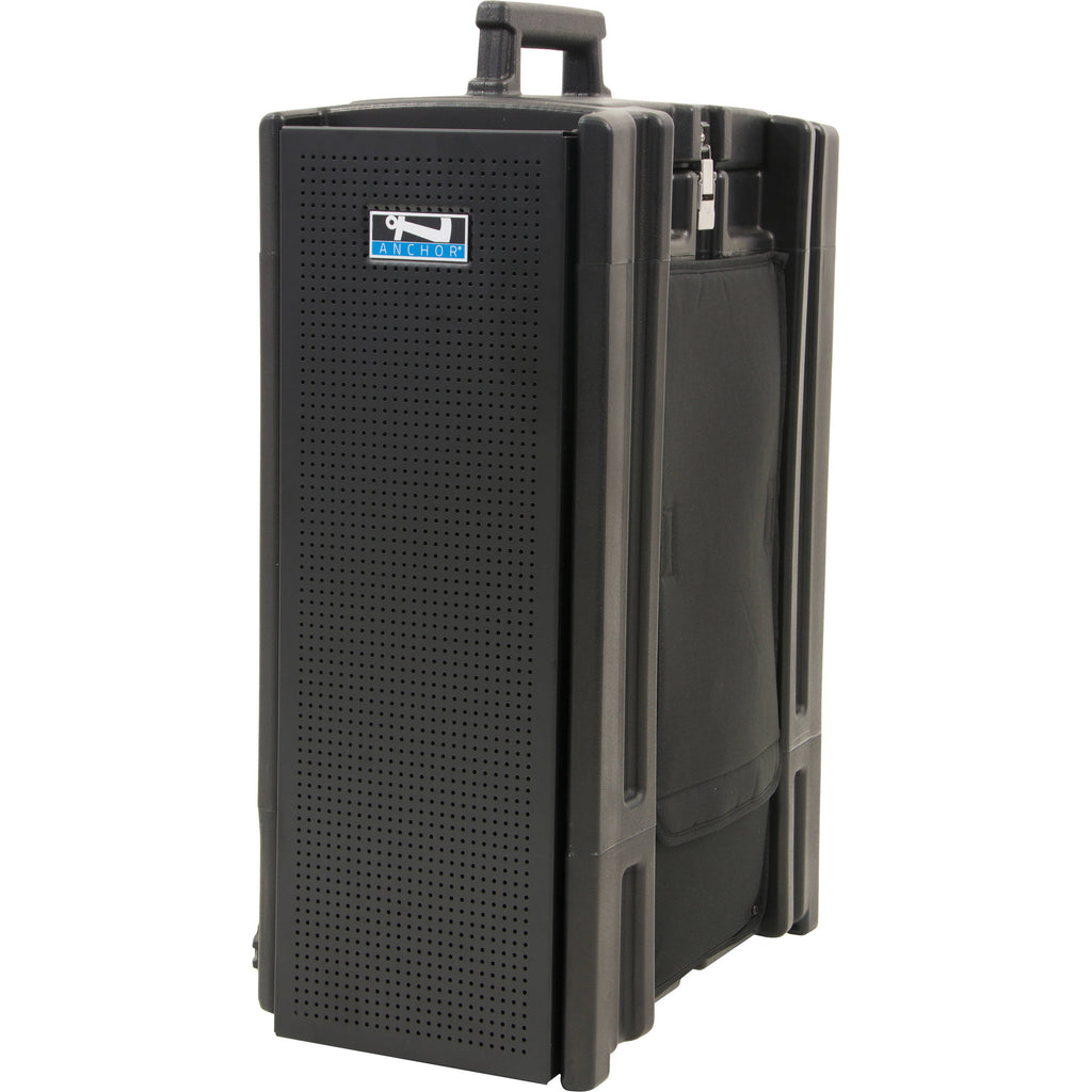 The Anchor Audio BEA2-XU4 is a Beacon 2 portable line array tower with Bluetooth, an AIR wireless transmitter, and two dual wireless microphone receivers. With 150W of rated output power driving eight 4" neodymium speakers and three 8" woofers and a neodymium compression driver to produce 120 dB SPL, it is designed to deliver versatile and powerful amplification for crowds of up to 2500 people in sports venues, educational facilities, and various indoor and outdoor events.