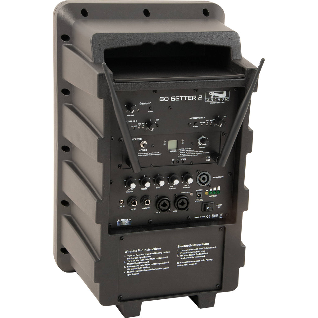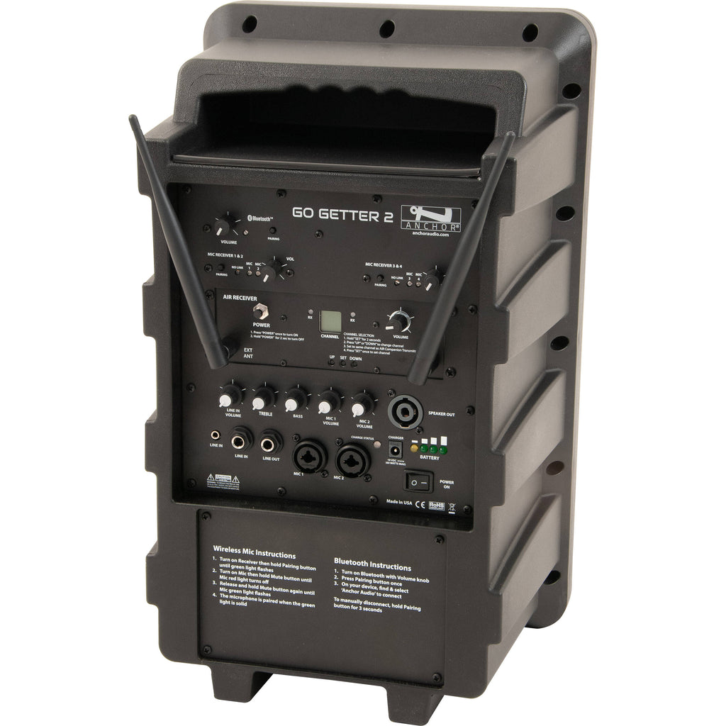 - Anchor Audio GG2-RU4 Go Getter 2 Portable Sound System with Built-In Bluetooth, AIR Wireless Companion Receiver, and Quad-Channel Mic Receiver (1.9 GHz)
