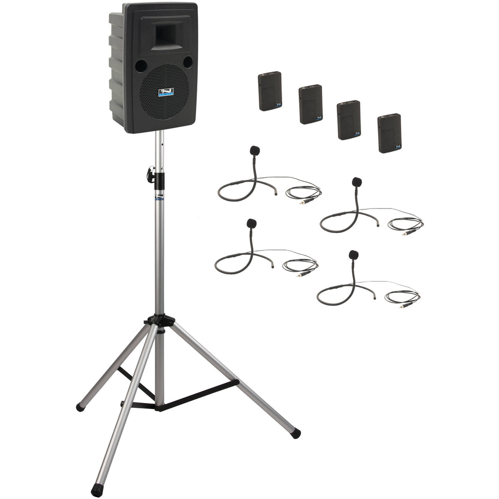 Anchor Audio Liberty System 4 with Four Beltpacks, Four Collar Mics, and Stand