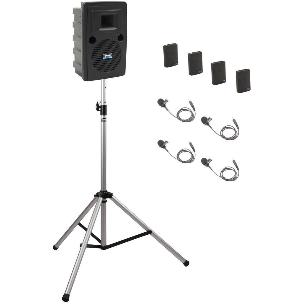 Anchor Audio Liberty System 4 with Four Beltpacks, Four Lapel Mics, and Stand