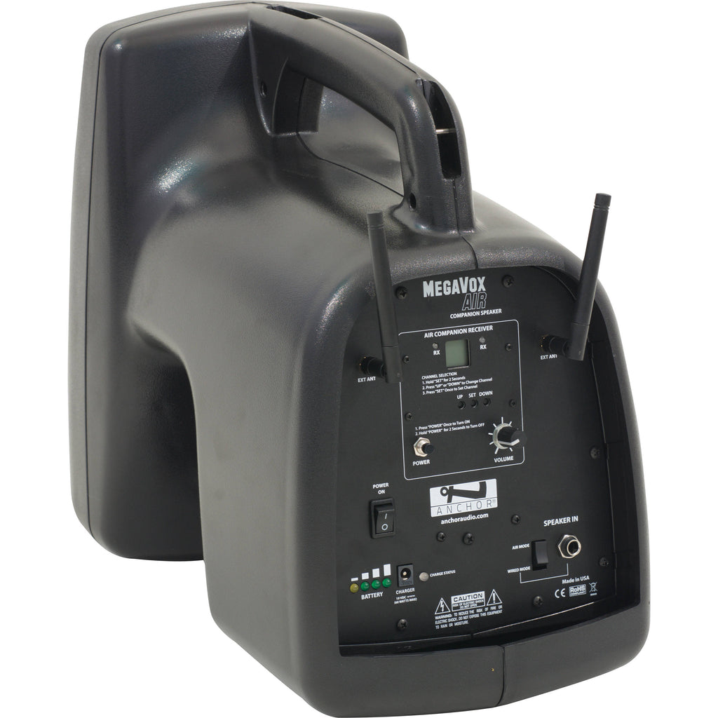 - Built-in AIR wireless receiver for cord-free connection from your MegaVox 2 portable PA system