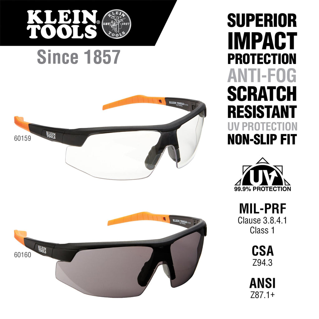 Klein Tools 60160 Protective Eyewear Grey Lens Anti-Fog/Scratch Resistant/UV Protection Black/Orange