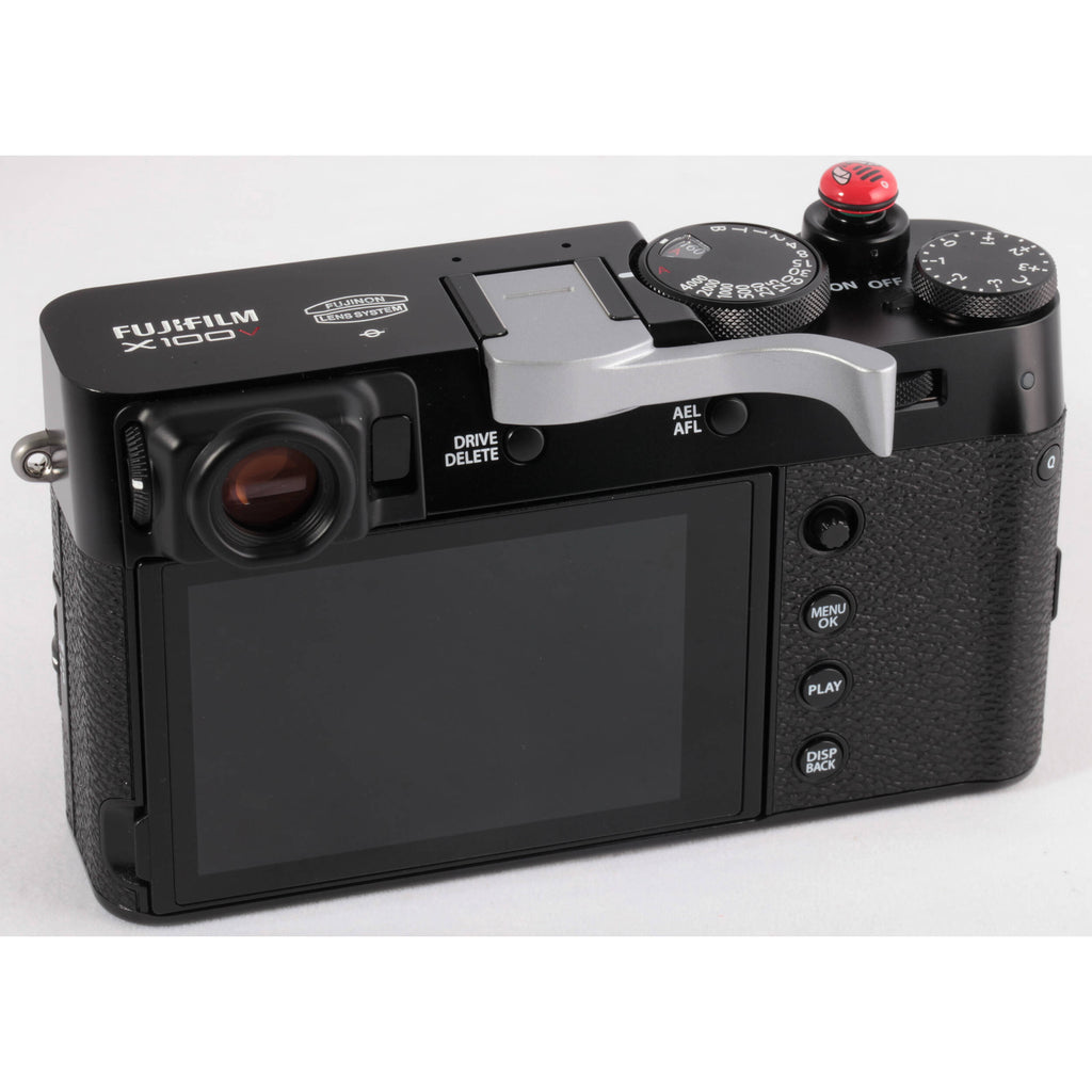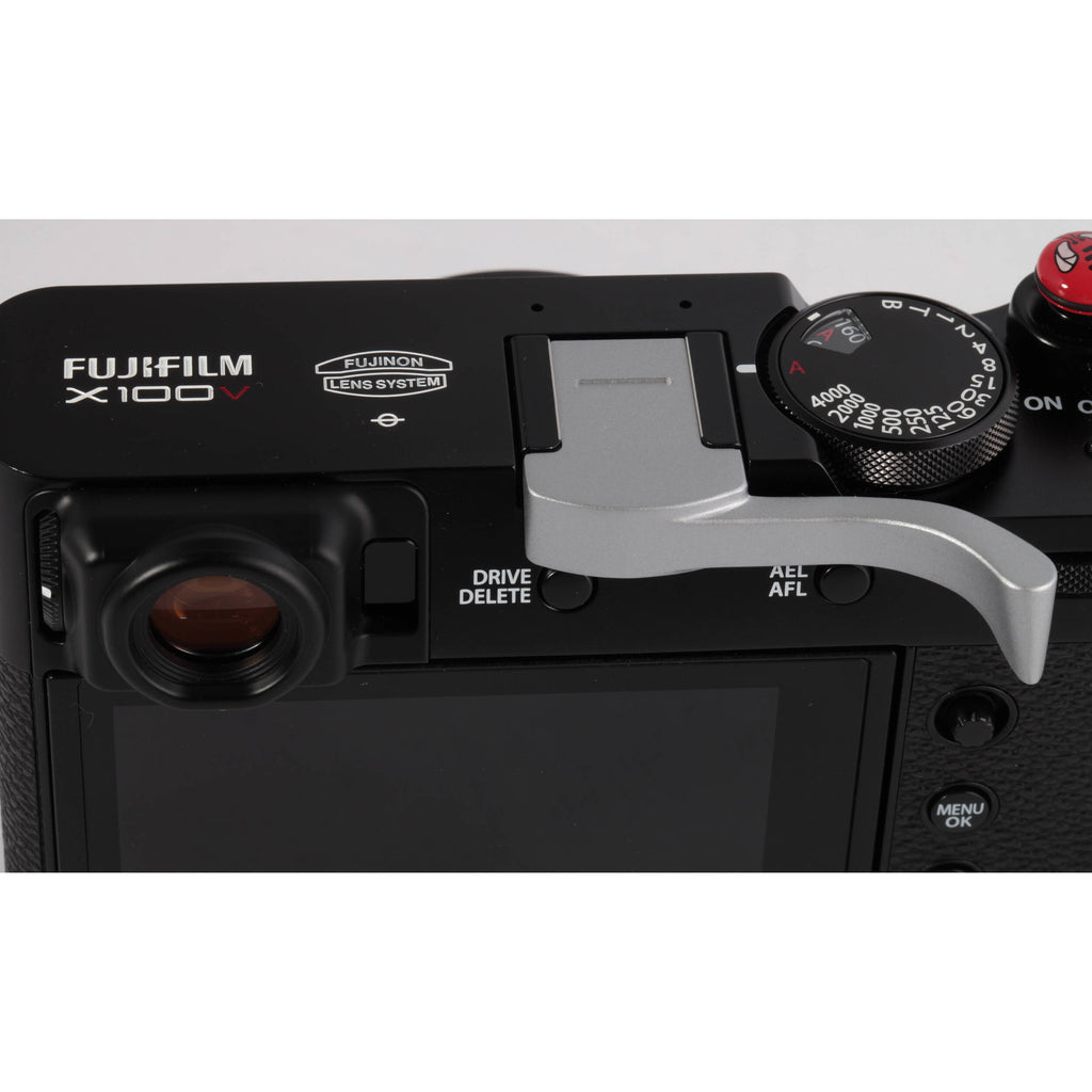 Fits FUJIFILM X100V Digital CameraImproves and Secures GripFull Access to Buttons and Thumb WheelSolid Brass Construction Shoot for longer periods with added comfort and stability with the EP-2V Thumbs Up Grip from Match Technical . Designed for the FUJIFILM X100V Digital Camera and offered here in silver, the EP-2V slides into the camera's hot shoe and provides you with a 22° beveled grip that is located in the ideal place for resting your thumb. This setup provides you with a more secure grip of your camera, making it easier to hold steady, resulting in sharper images. The ergonomically-designed grip perfectly matches the X100V, making it appear as though it naturally belongs to the camera system and ensures it does not block access to any controls. All of the camera's buttons and the zoom thumb wheel are easily accessible, and the grip features solid brass construction with a baked enamel finish.