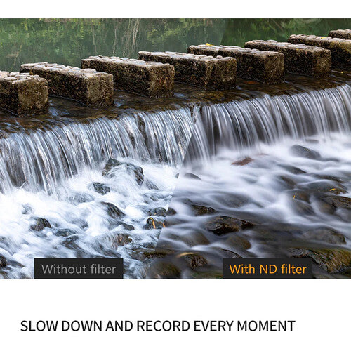 - ND1000 filter reduces the amount of light by 10 stops, making this long-exposure tool an ideal choice for achieving slow shutter speeds and recording moving subjects, like waterfalls, with a silky smooth effect.
