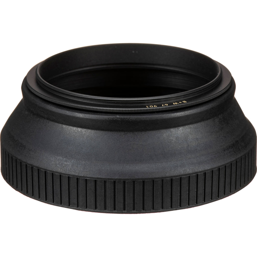 This 67mm Collapsible Lens Hood from B+W is made of high-grade rubber which in its collapsed state protrudes only a short distance. The lens hood is an essential accessory for better pictures and should always be used to prevent flare. As well as shielding stray light, this lens hood also provide effective physical protection of the delicate front lens against raindrops, accidental contact and from accidental knocks and bangs. B+W lens hoods have an all-purpose design and fit many different lens types from wide angle to telephoto.