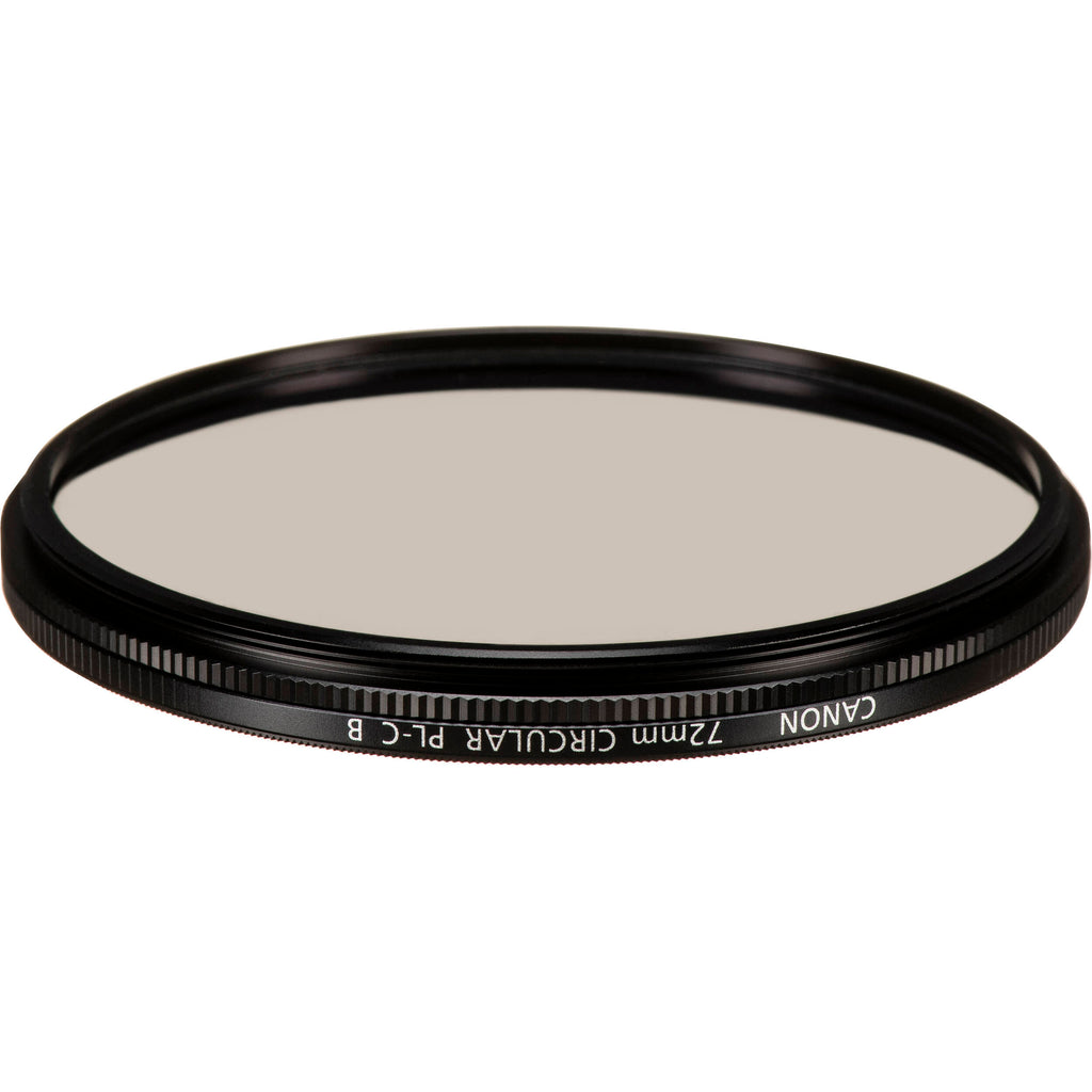 Useful for minimizing reflections and glare and enhancing the overall color and tonal saturation is the 72mm Circular Polarizing Filter from Canon. By filtering out light that has become polarized due to reflection from a non-metallic surface, this filter helps to produce a noticeable increase in saturation of skies and foliage, as well as clearer imagery when photographing in hazy conditions. A circular polarizer differs from a linear polarizer in that it supports full use of a camera's autofocus and auto-exposure functions.