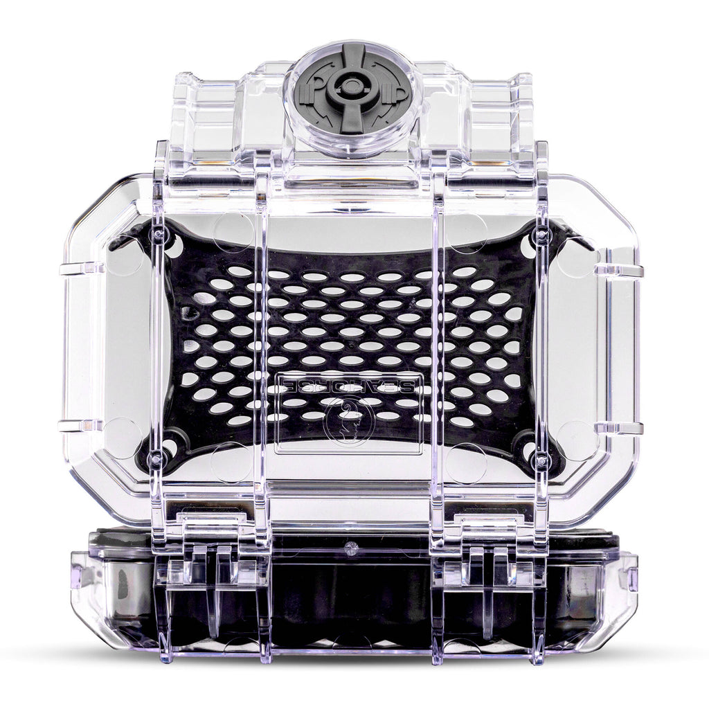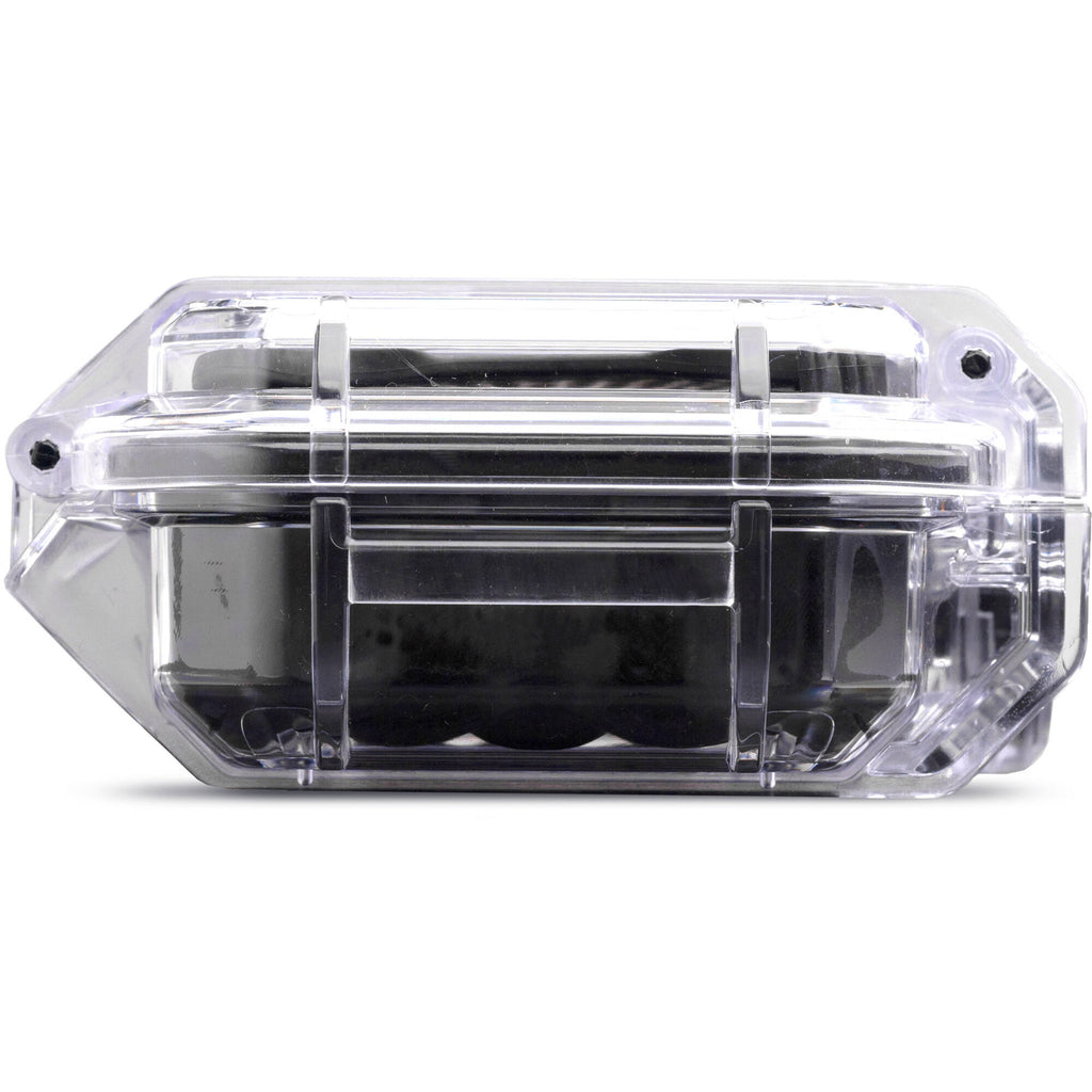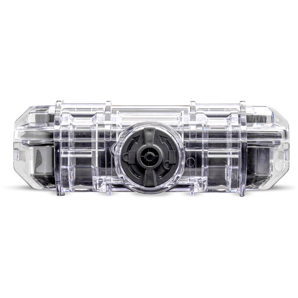 Carry and protect your small valuable items with the clear, small Tech Case from Evergreen Cases. This case can function as a dry box for your small valuables and electronics either at home or while traveling. Three secure locking latches ensure it stays closed and the flip latch pressure equalization system protects against changes in air pressure. Use the carabiner loop to attach your case to a bag or other object.