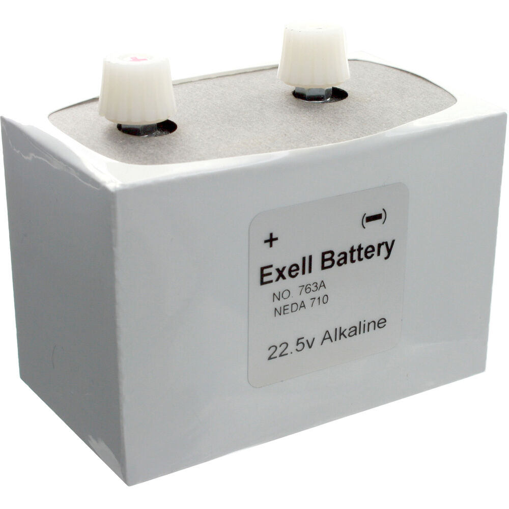 The Exell Battery 763/710 Alkaline Battery produces 22.5 volts and is the perfect replacement for the hard-to-find Eveready 763. The battery can be found in vintage camera equipment to sophisticated medical testing equipment.