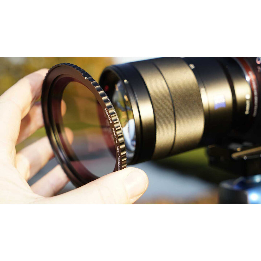 The 82mm NanoPro Magnetic Interchangeable Variable ND 2-Filter Kit from Haida combines a pair of variable neutral density filters with magnetic filter ring for a fast density adjustment range from 2 f/stops to 9 f/stops. The aircraft-grade aluminum ring screws onto the 82mm front filter thread of a lens, allowing either the 2-5 f/stop filter or the 6-9 f/stop filter to be attached or exchanged in just seconds. The filter ring features front filter threads, allowing it to stay on the lens and have a lens cap attached when not in use.