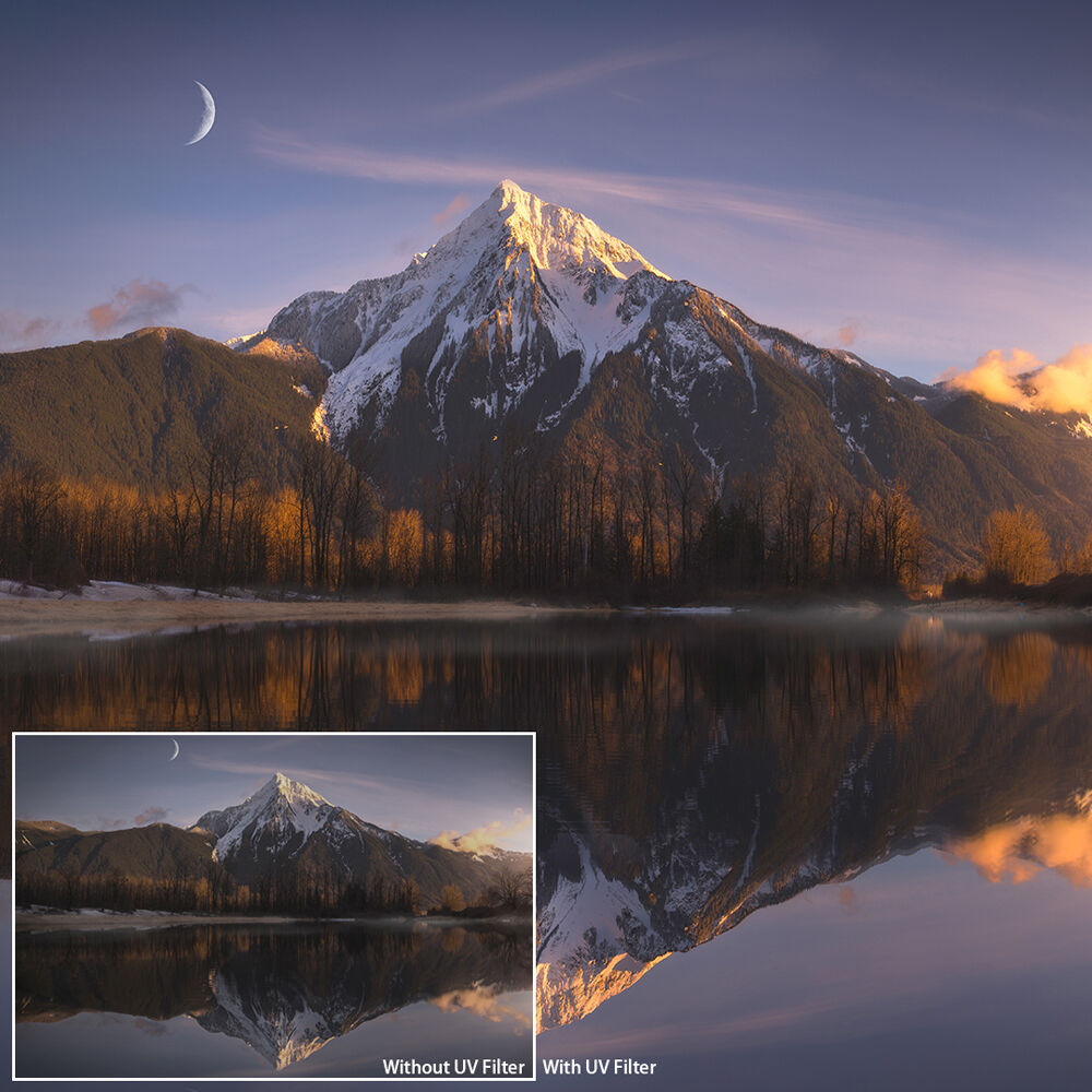 This 82mm Haida Greystone Multicoated UV Filter features an ultrathin aircraft-grade aluminum filter ring that is only 0.122" thick, which helps prevent vignetting on wider lenses or when stacking multiple filters. Use this filter to reduce haze in your image, which can be caused by UV contamination. The filter blocks UV without requiring exposure compensation and blocking UV can result in cleaner colors in your image. This makes the UV filter a good choice to leave on your lens all the time, as it can help protect your front element from dirt, dust, spray, and splash.