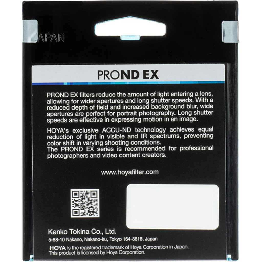 The ProND EX 64 filter uses Hoya's ACCU-ND technology to prevent color shift in order to deliver consistent image quality. ACCU-ND ensures an equal reduction of light in both visible and IR spectrums so that you don't experience color shift when shooting in different outdoor conditions. The filter features 52mm threading on both the front and rear sides. Additional ND filters can be stacked on the front, or you can attach a threaded lens cap or other filter.