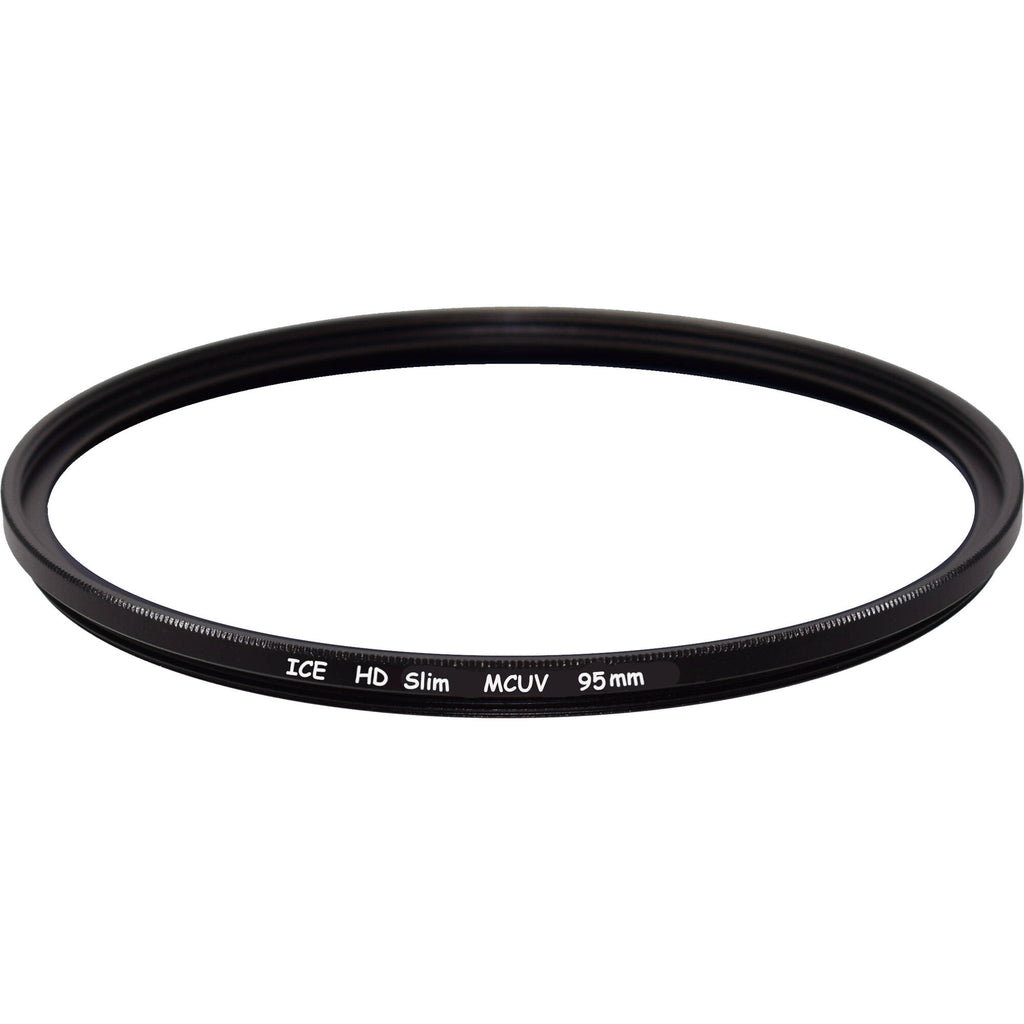 The 95mm Ice UV Filter is a general-use clear filter designed to absorb ultraviolet light and reduce the bluish cast of daylight. Aside from the reduction of unwanted blue casts, no additional coloration or contrast is created, and adjustments to exposure are not required while using this filter. To prevent internal ghosting and reflections, each glass surface includes eight layers of antireflection coating. This coating also offers protection to the filter substrate and helps it to stay clean for longer than uncoated filters.
